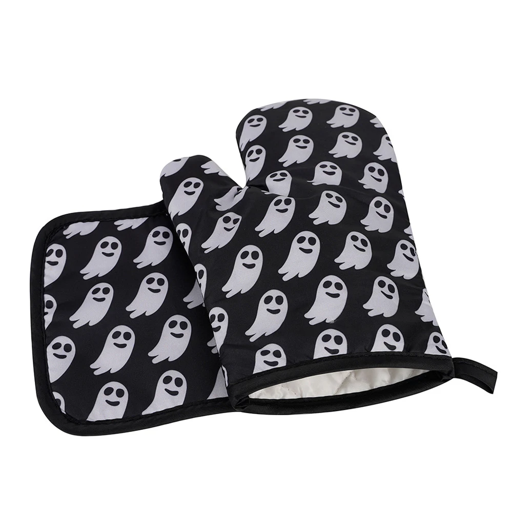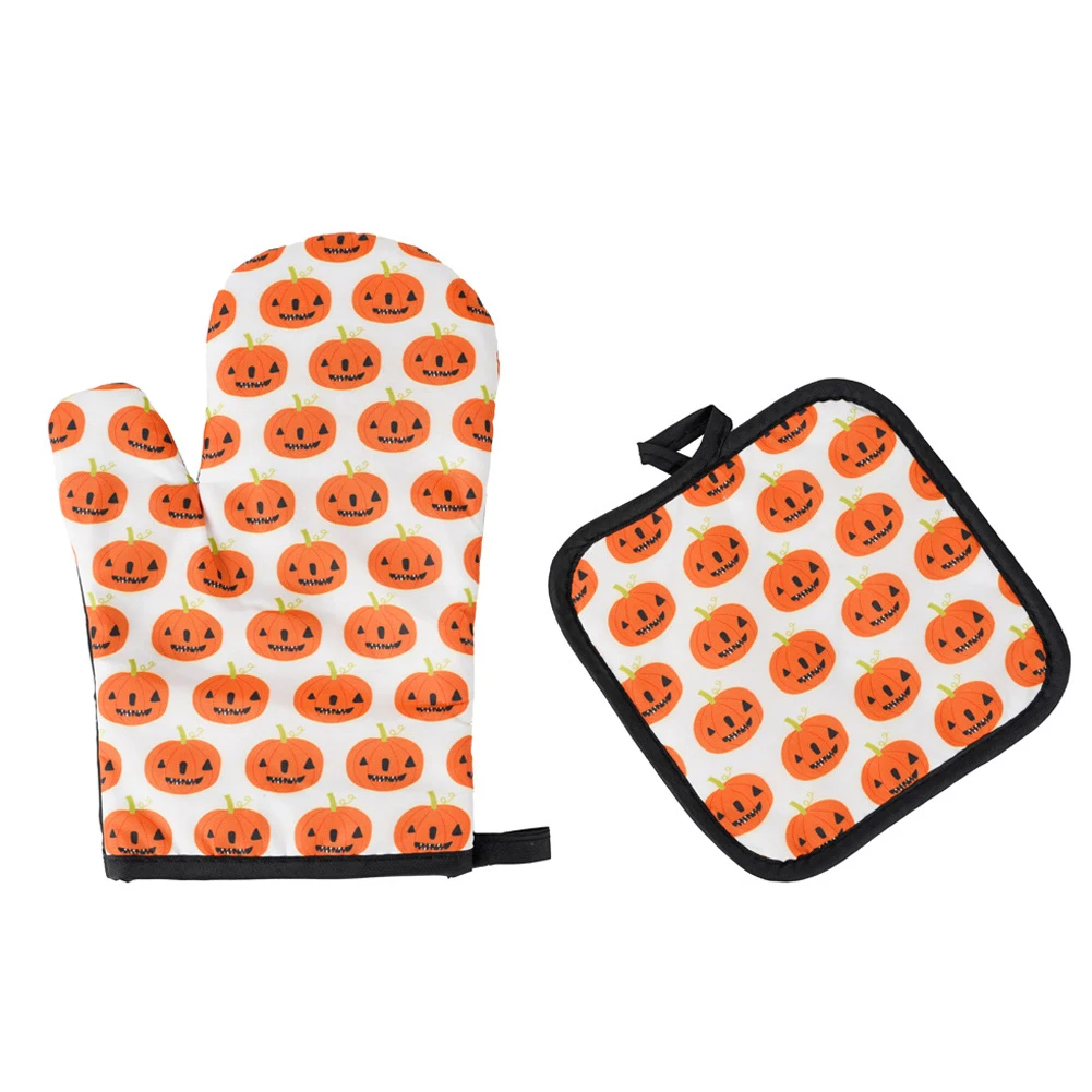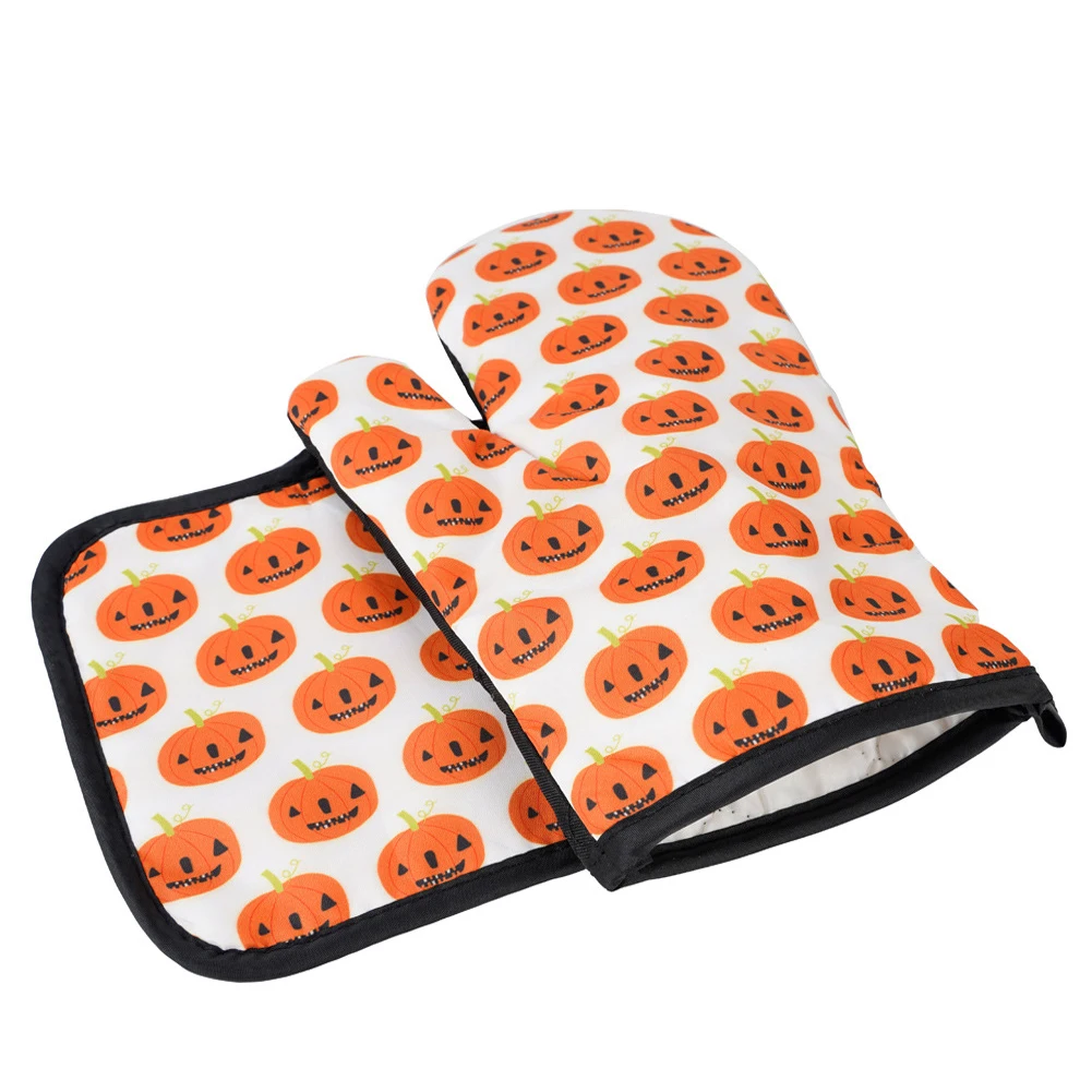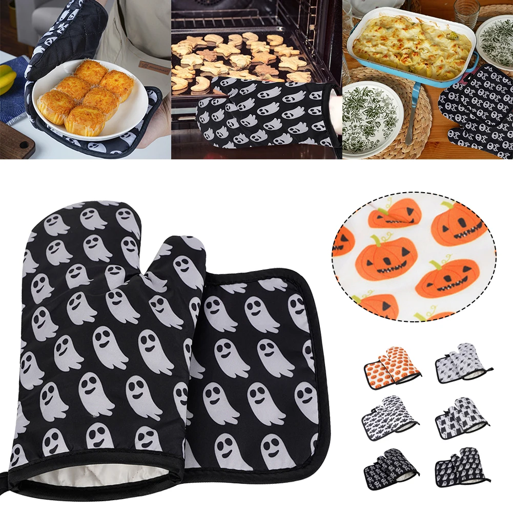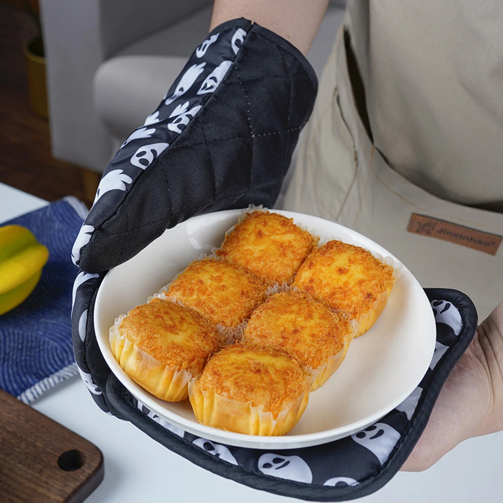 2 шт., перчатки для микроволновой печи на Хэллоуин, перчатки для барбекю, хлопковые духовые рукавицы, термостойкие льняные прихватки, Нескользящие кухонные инструменты для приготовления пищи