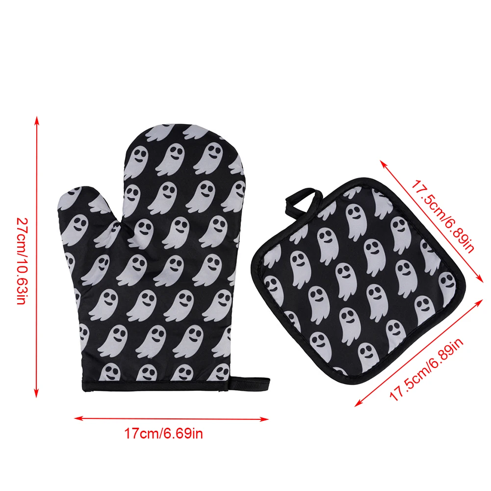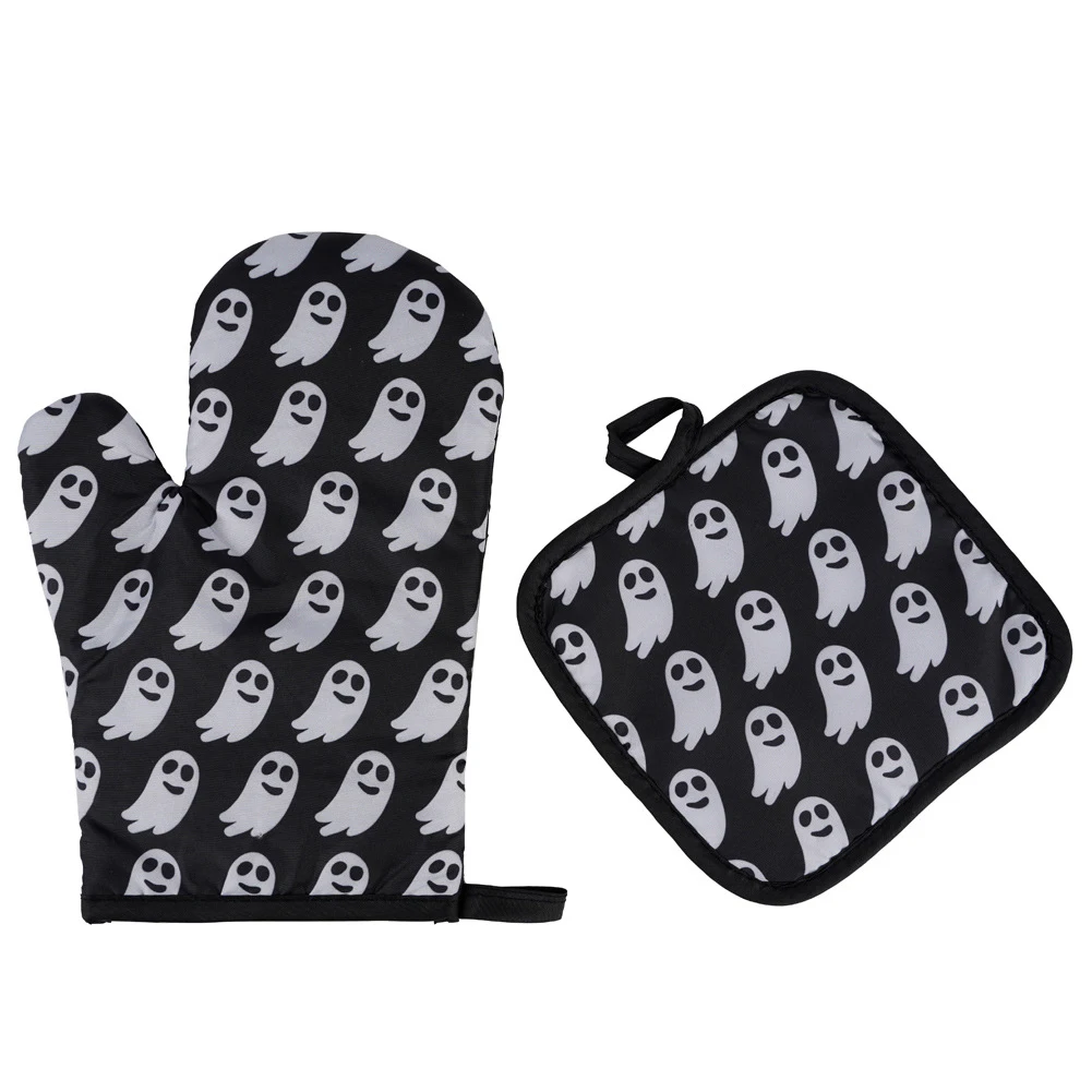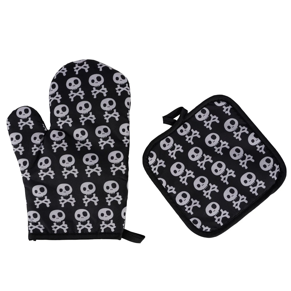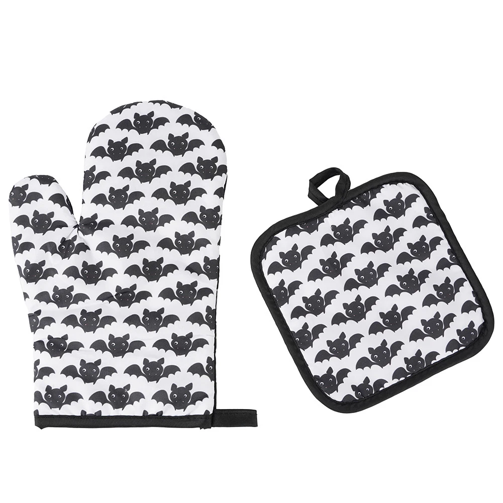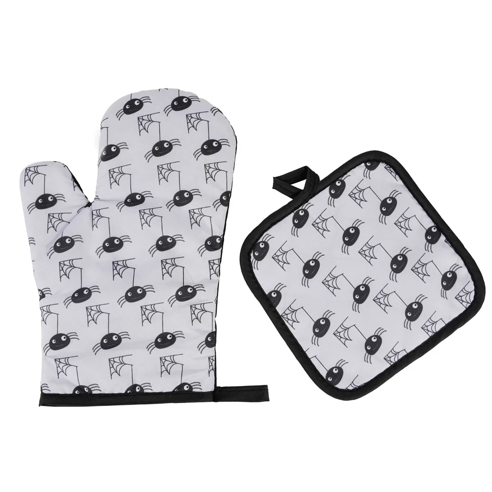2 шт., перчатки для микроволновой печи на Хэллоуин, перчатки для барбекю, хлопковые духовые рукавицы, термостойкие льняные прихватки, Нескользящие кухонные инструменты для приготовления пищи
