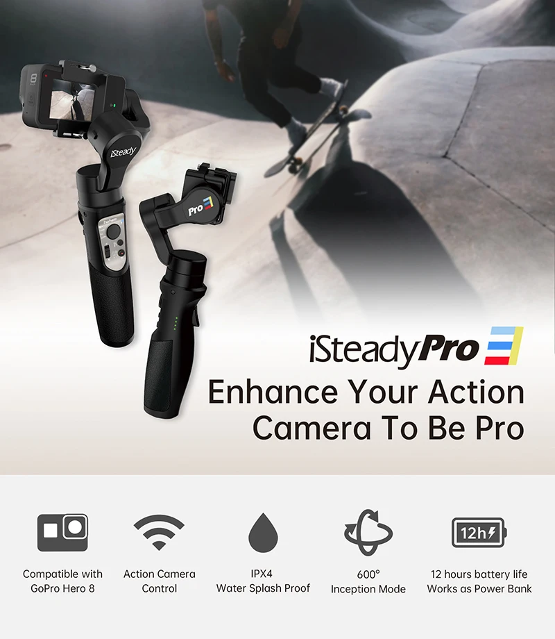 Бренд: hohem Модель: iSteady Pro 3 Основной материал: ABS + PC поддерживаемый Размер камеры: Макс. Высота 48 мм, Макс. Толщина 32 мм нагрузка: 150 г Угол наклона: 320 ° угол прокатки: 320 ° угол панорамирования: 600 ° Тип батареи: 18650 литий-ионный аккумулятор Срок службы батареи: 12 часов с поддержкой Wi-Fi модуль Рабочее время автономной работы: 6 часов Время зарядки: 3,5 часов Рабочая температура: -10 ~ 45; Экшн-камеры для зарядного устройства: да; Настройку приложения: Да Вес товара: 365g/дистанционного управления (включая батарею) посылка Размер: 31,5*14*5 см/12,4*5,5*2 посылка Вес: 640 г/1.4lbs