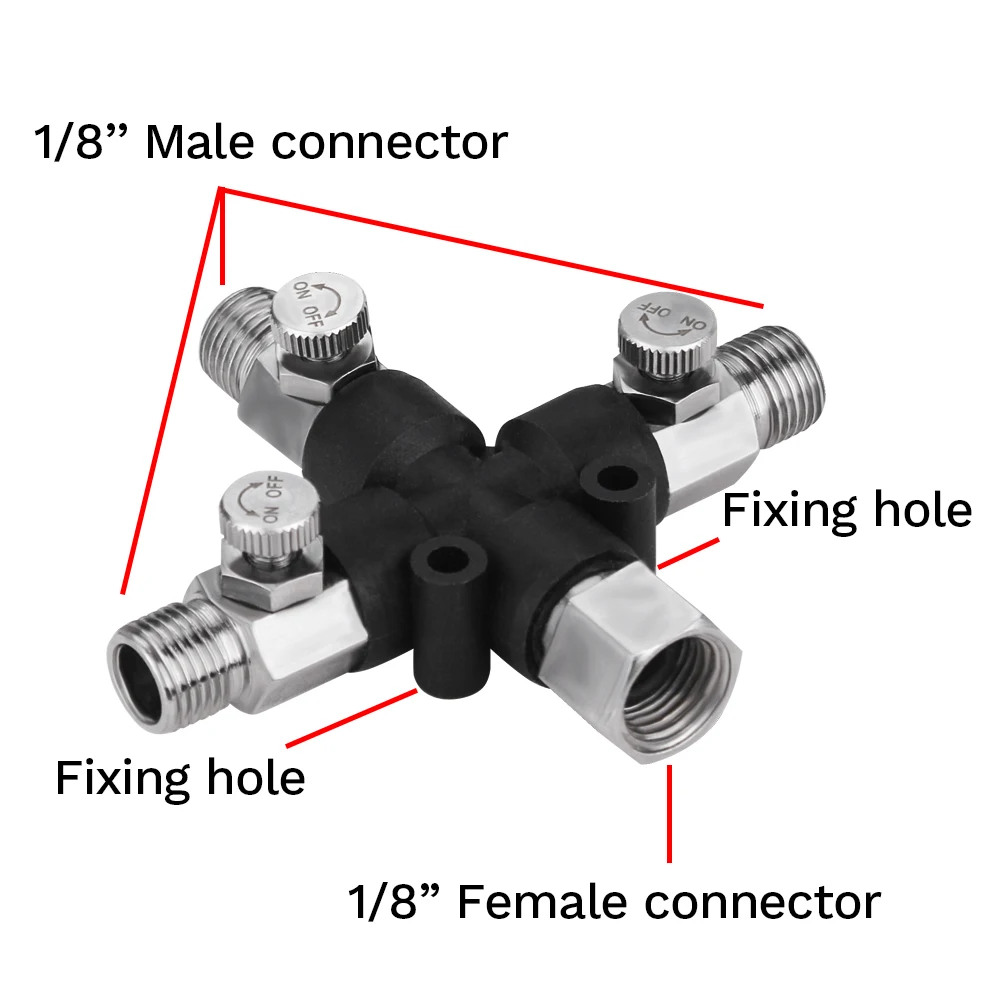 С 1/8 "фитингами и вилками позволяет разделить подачу воздуха до 3 способов.