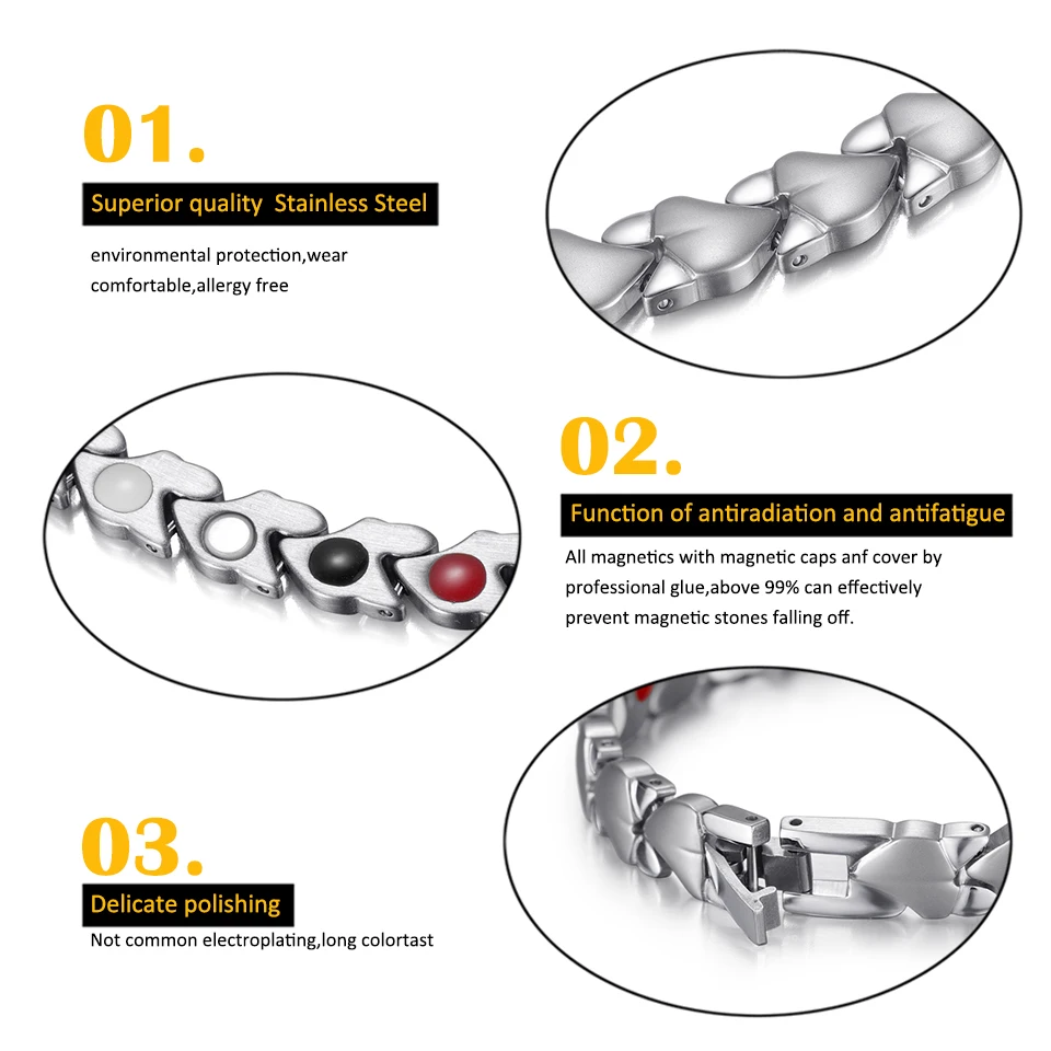 Браслет из нержавеющей стали с магнитными элементами для здоровья