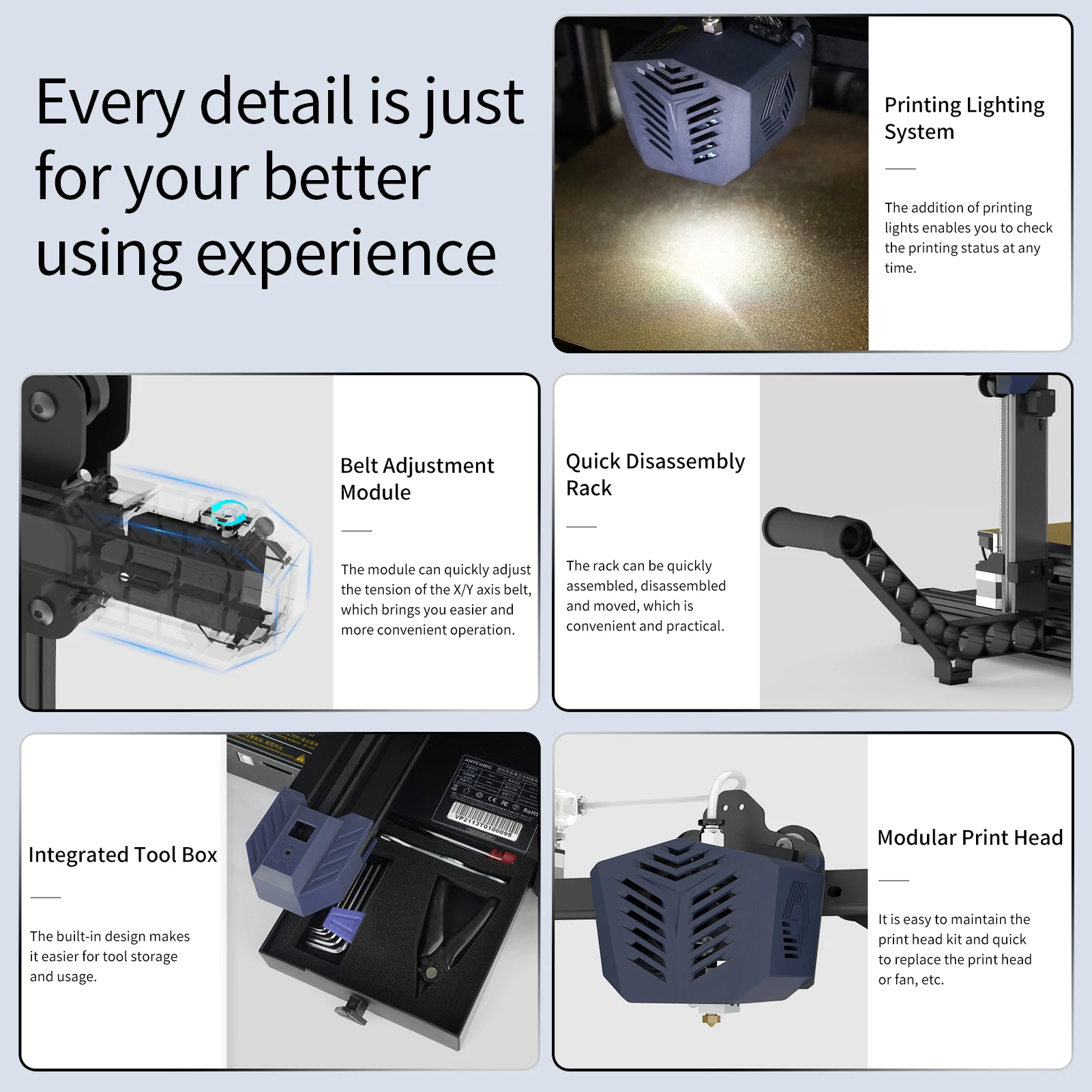 Функция обновления:4,3 дюймов сенсорный экран функции новый пользовательский интерфейс, гладкой и простота в эксплуатации, а также на английском и китайском языках переключения. Встроенная конструкция ящика для инструментов облегчает хранение и использование инструментов. И добавление света печати позволяет вам проверить состояние печати в любое время.