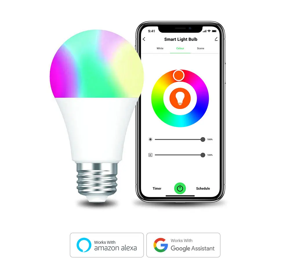 Умная лампа работает с Alexa Echo, Google Home Assistant, вы можете управлять умной лампой через ваш голос, И просто нужно дать голосовую команду, чтобы включить/выключить или затемнить/осветить ваш светильник.