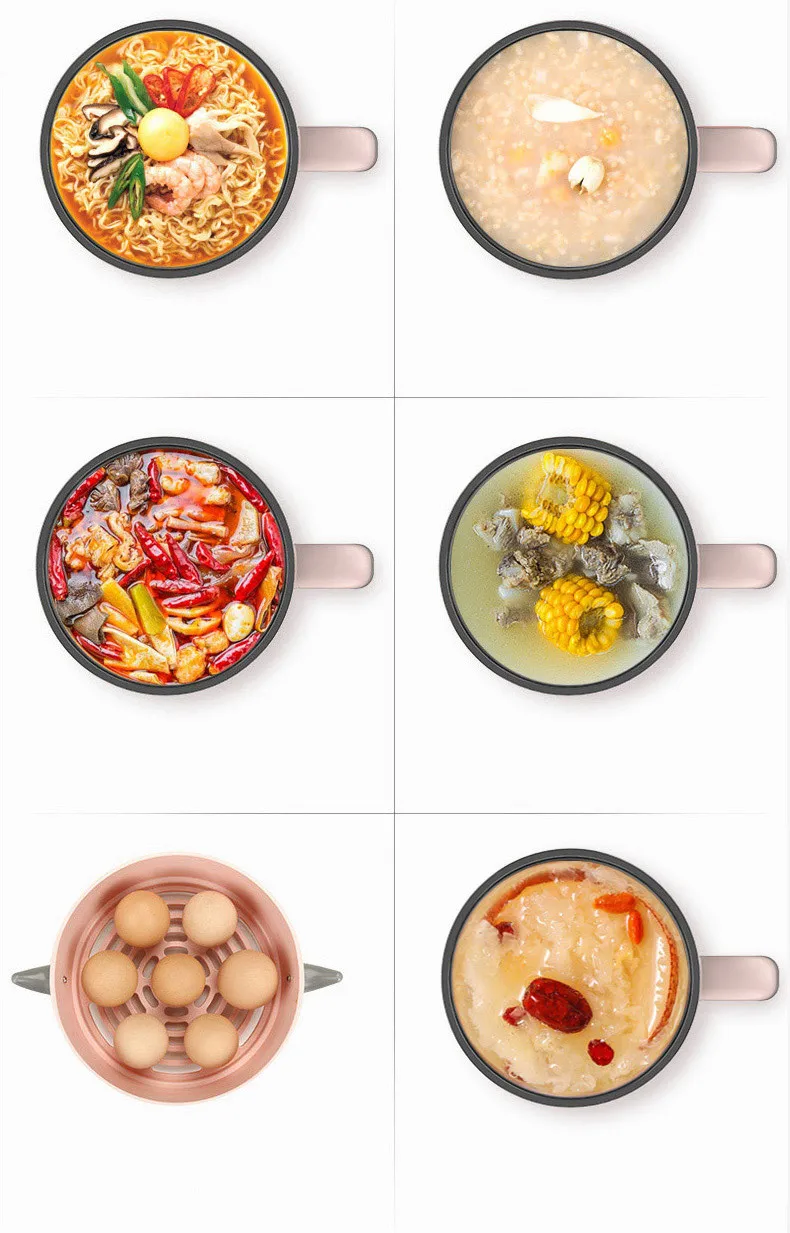 Многофункциональный, вы можете использовать его для приготовления каши, лапши, маленького горячего горшка, приготовленной на пару пищи... Подходит для 1-2 человек;