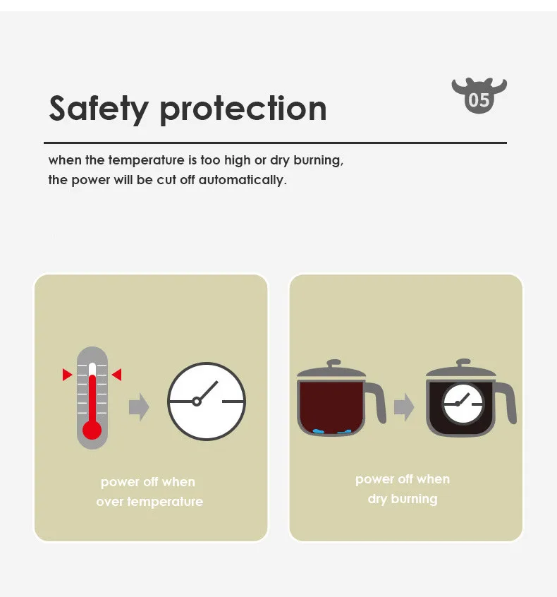 Безопасная защита, автоматическое отключение при слишком высокой или сухой температуре.