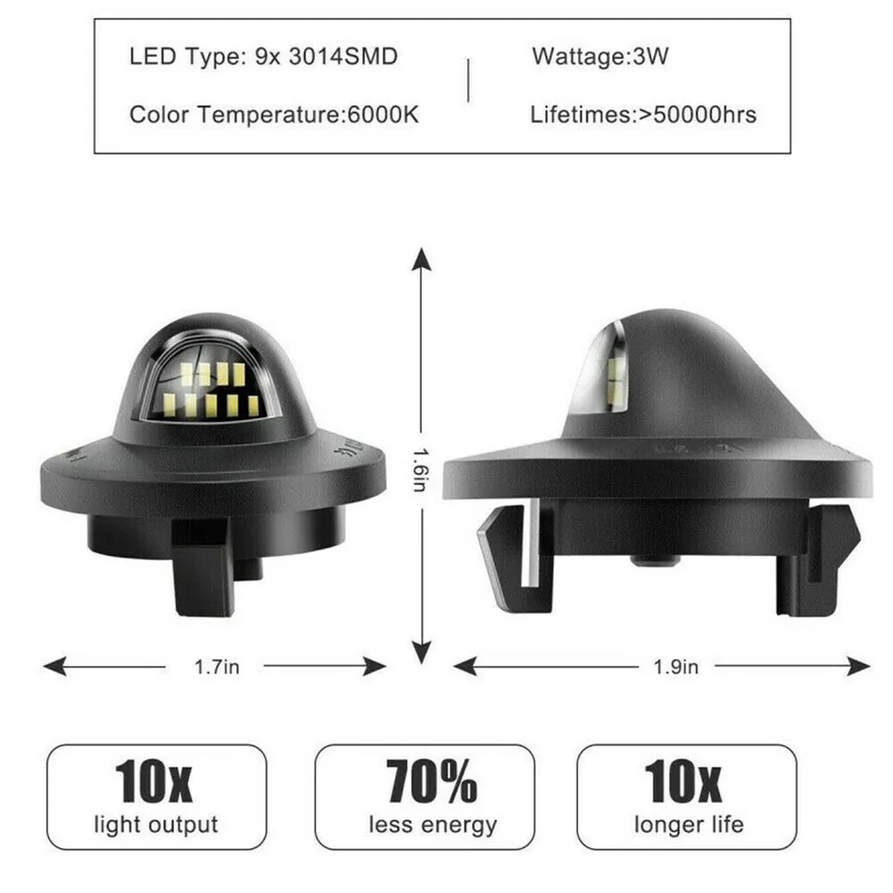 * Чрезвычайно яркий: каждая фара имеет 9 SMD 6000 K белый 3014 светодиодных чипов. На 300% ярче, чем ваши Заводские номерные знаки, максимизирует заднее торцевое освещение.