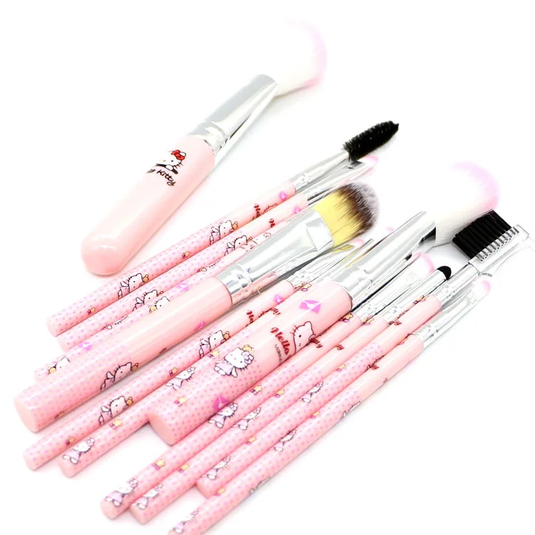12 шт. набор розовых мультяшных кистей для макияжа, включая: