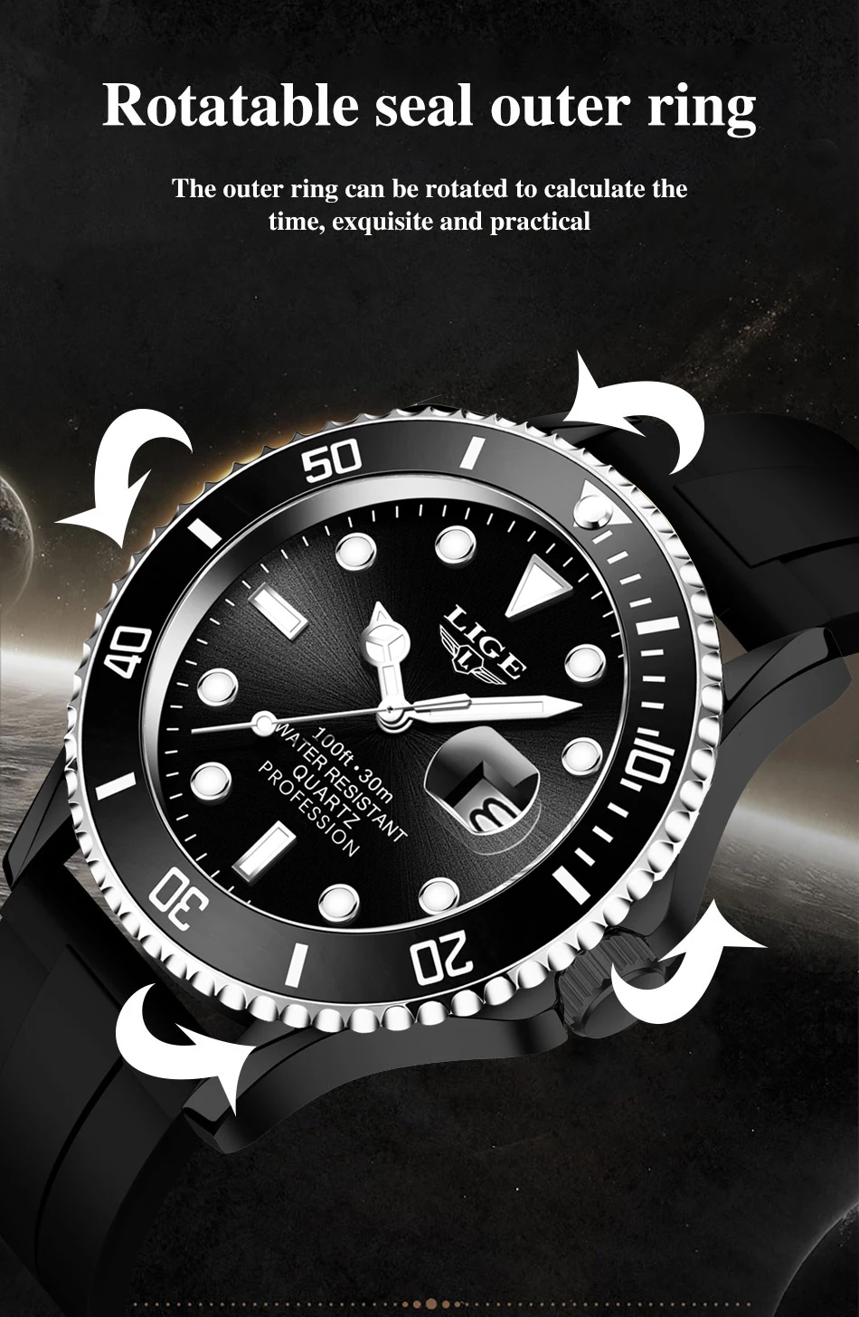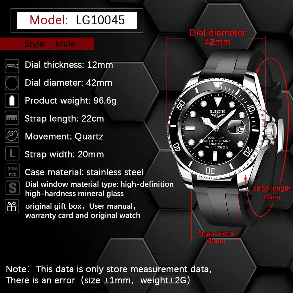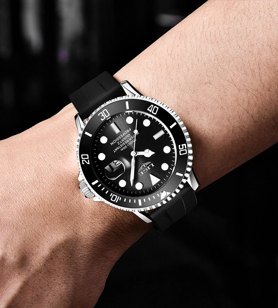-Черный силиконовый ремешок с застежкой, любую толщину запястья можно носить, герметичность может быть легко отрегулирована в любое время, и БУКСИРОВКА более удобна. Удобно носить.
