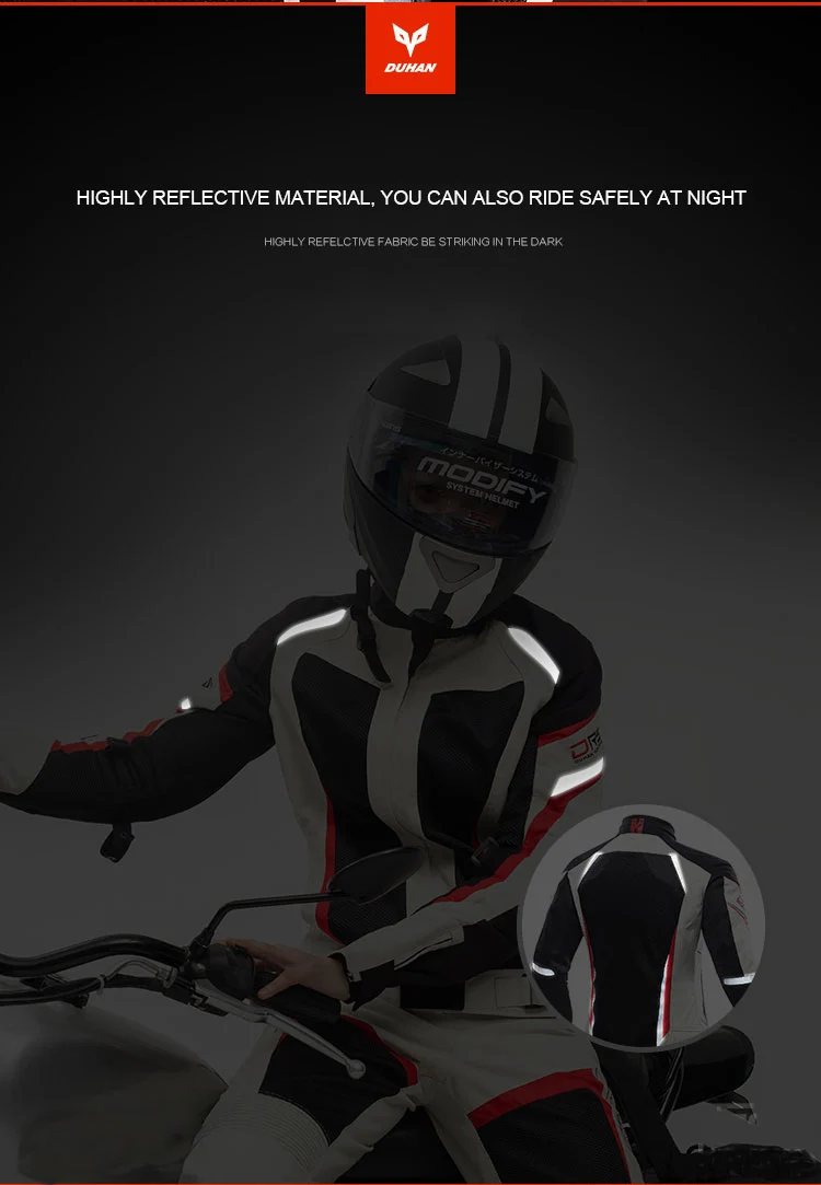 DUHAN Женская мотоциклетная куртка, дышащая мотоциклетная одежда, летняя женская мотоциклетная куртка и мотоциклетные штаны, одежда для гонок, костюм