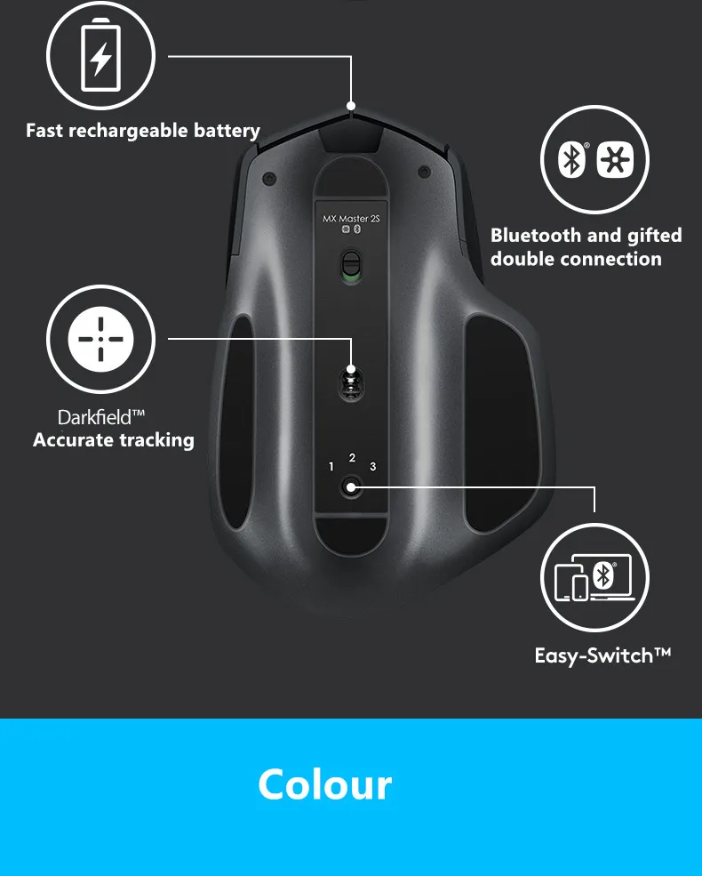 MX Master 3 мышьВысота x Ширина x глубина:4,91 дюйма (124,9 мм) x 3,31 дюйма (84,3 мм) x2.0 дюйма (51 мм)Вес: 5,0 oz (141g)Usb-приемникВысота x Ширина x глубина:0,72 в (18,4 мм) x 0,56 дюйма (14,4 мм) x .26 дюймов (6,6 мм)Вес: 0,07 унций (2 г)Системные требованияUsb-приемникТребуется: Доступный usb-портОкна®7, Windows 8, Windows 10 или более поздней версииMacOS®10,13 или более поздней версииLinuxBluetooth®Требуется: технология Bluetooth с низким энергопотреблениемWindows 8, Windows 10 или более поздней версииMacOS 10,13 или более поздней версииLinuxТехнические характеристикиСенсорная технологияВысокая точность DarkfieldНоминальное значение: 1000 точек/дюймDPI (минимальное и максимальное значение): от 200 до 4000 dpi (может быть установлен с шагом 50 dpi)Кнопки7 кнопок (левый/правый щелчок, Назад/вперед, App-Switch, Wheel mode-shift, Middle click)Колесо прокрутки: Да, с автоматическим сдвигомЭскиз: ДаКнопка жеста: ДаБеспроводное рабочее расстояние10m7Беспроводная технологияРасширенный 2,4 ГГц Беспроводная технологияБатареяАккумуляторная батарея Li-Po (500 мАч)Получите три часа использования с одной минуты быстрой зарядки 5.Дополнительное программное обеспечение:Logitech Options и Logitech Flow.Разместите заказ и получите коврик для мыши в подарокLogitech MX Master 3