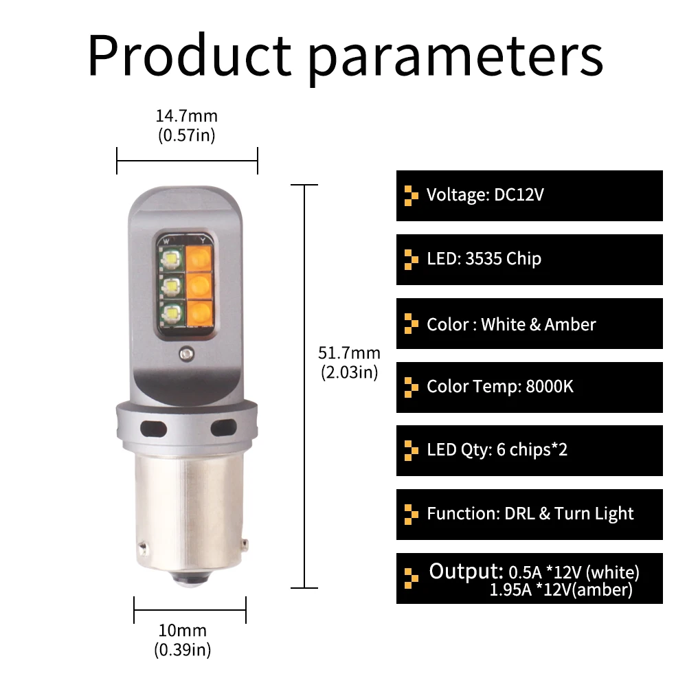 YSY 1 комплект светодиодный сигнал поворота автомобиля DRL 2 в 1 BA15S BAU15S PY21W Canbus 3535 без гипервспышки T20 7440 w21w двойной цвет 12SMD белый Янтарный 12 В
