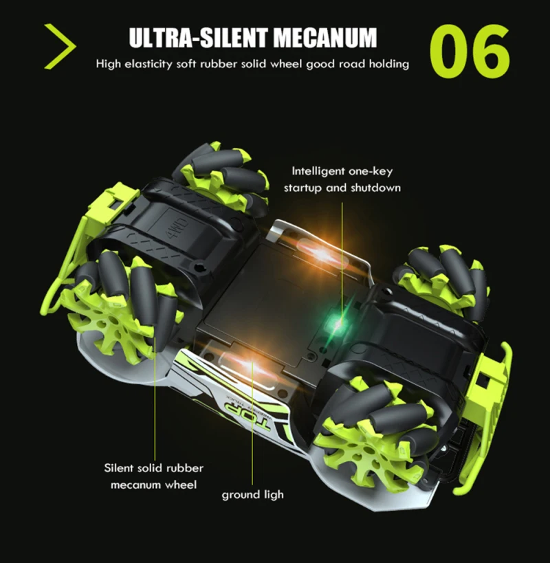 Полный цифровой пропорциональный дистанционный пульт/всенаправленная 360 градусов бесплатная панорамирование/Произвольные радиус поворота/бесступенчатое регулирование скорости/высокая скорость динамической дрейф/постоянная скорость выносливость демонстрации/Встроенный 4 комплекта фотоэлектрический цифровых механизмов/Слева и справа с помощью 3D Рокер с двойным потенциометром/USB боди Экспресс-зарядка длительный срок службы батареи/интеллектуальный цельный Автоматический Режим сна и выключения, промышленная система управления Сервоприводом/Динамическое моделирование звуковых эффектов/супер яркие прожекторы и заземление/полный мягкий резиновый бесшумный McNair Колесо