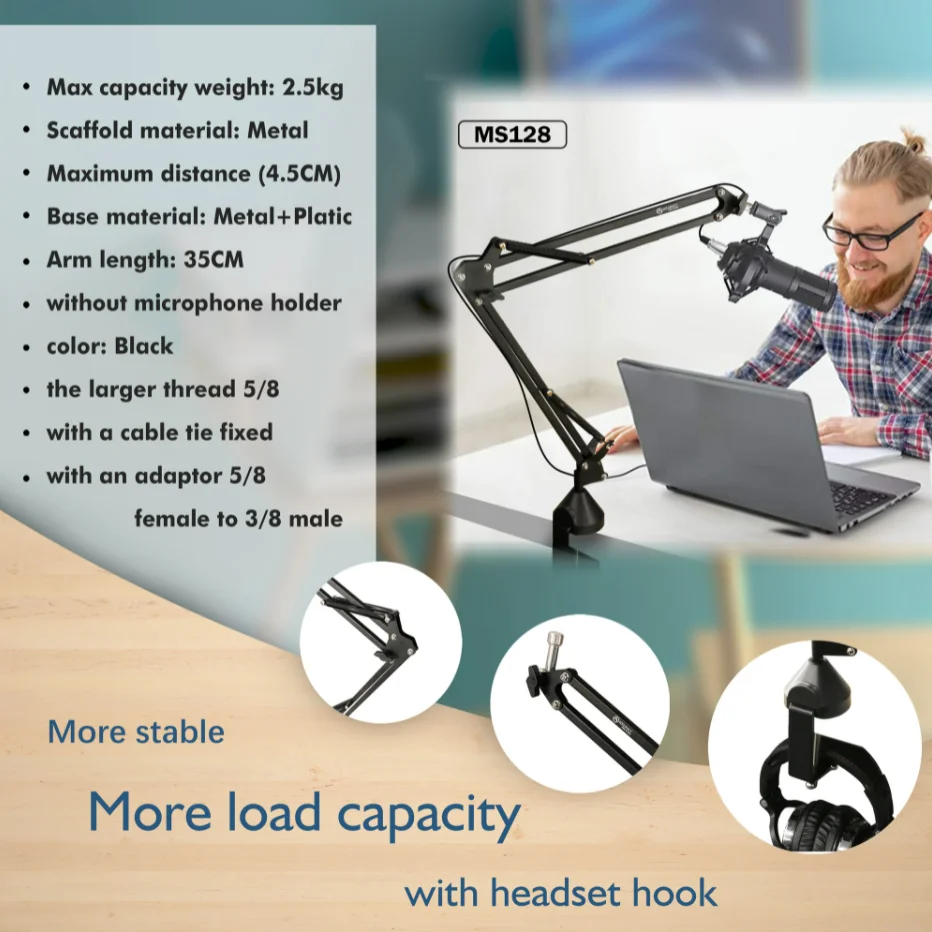 Выдерживает вес до 2-2,5кг (производителем заявлено, что выдерживает до 2,5кг). Выполнен из качественного металла с струбцина из толстого металла, конусовидная форма крепления к столу, как у стоек Родэ, из очень толстого платика, пантограф не шатается, крепко сидит. Даже в незатянутом состоянии затяжителя может выдержать до 1-1,5кг.