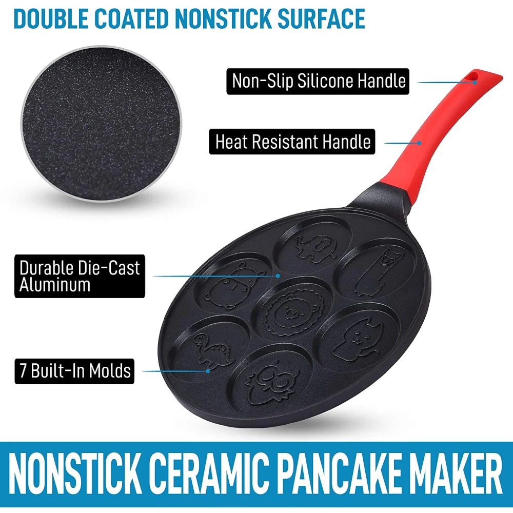 7 милые формы в виде животного: все ли мы согласны с тем, что блинчики-это настоящая сделка для наших маленьких, когда дело доходит до завтрака? И создание самых милых и пышных блинов побудит их есть больше этой небесной доброты. Разработан с 7 различными формами животных (кошка, овца, черепаха, сова, корова, слон и лама).