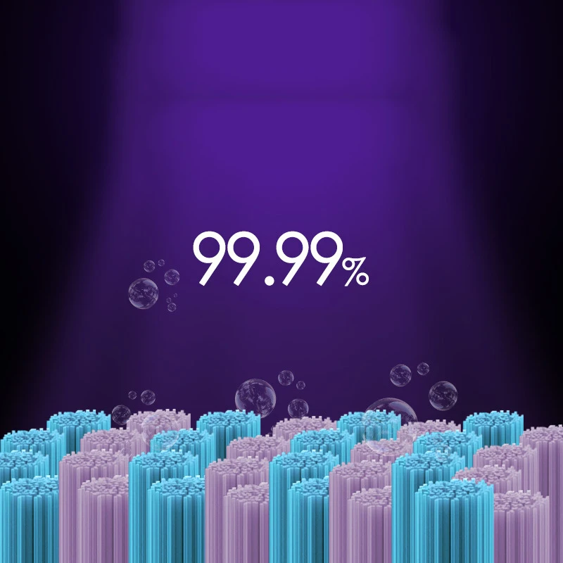 Built-in ultraviolet lamp, the sterilization rate is as high as 99.99 percent, the sterilization mode can be activated by pressing the button, and the brush head can be cleaned 360 degrees.
