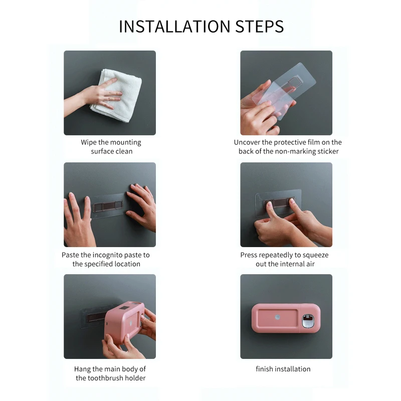 Equipped with a non-marking sticker, just need to paste it on the wall, and then hang the toothbrush holder, convenient to install.