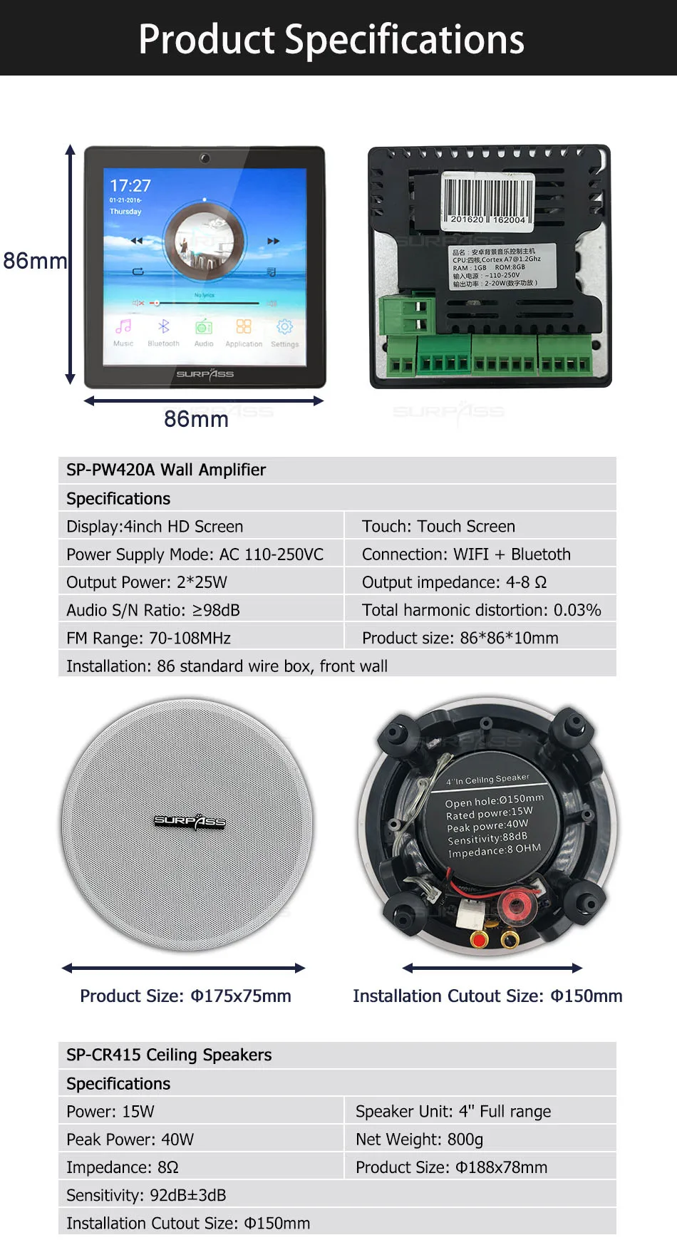 ● Установка: стандартная распределительная коробка 86, передняя стенка