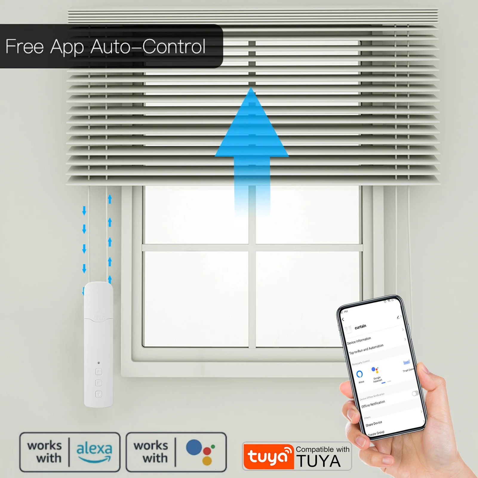 С этим продуктом вам больше не нужно вручную поднимать занавеску, иногда ваши руки держат вещи, это не удобно для вас, чтобы управлять занавеской. С помощью этого продукта вы можете открыть или закрыть шторы через ваш мобильный телефон, пульт дистанционного управления даже ваш голос. Это очень легко для вас, чтобы управлять им, приходите и попробуйте.