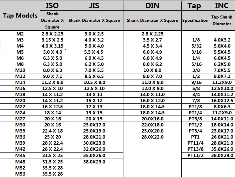 ISO/DIN/JIS M3-M16Защита от перегрузкиНабор пневматических нарезающих патронов