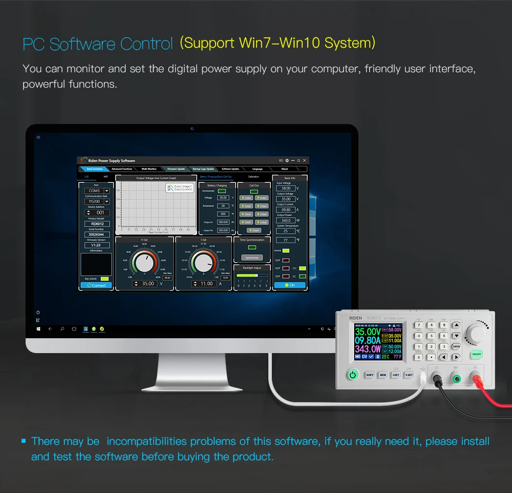 1, серия RD6012 имеет две версии: RD6012andRD6012-W,RD6012-W haveWIFIboard , RD6012 нет. RD6012-W может использовать Wi-Fi плату для подключения приложения, а также использовать микро-кабель USB для подключения ПК solftware. RD6012 не имеет Wi-Fi платы, только поддержка программного обеспечения ПК путем подключения с USB микро кабель, без поддержки приложения. Для Wi-Fi платы для подключения программного обеспечения ПК, теперь он не поддерживает.