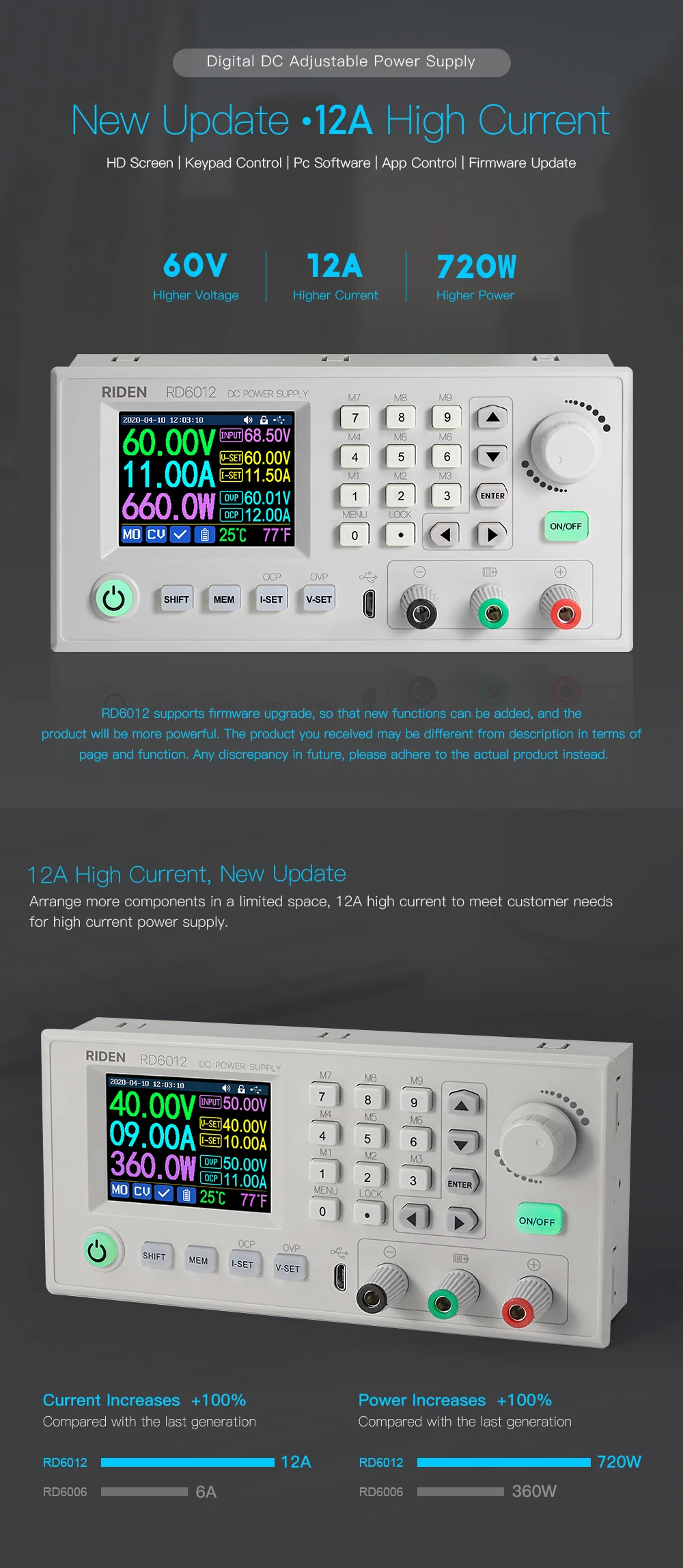 RD6012 RD6012-W USB Wi-Fi, постоянного тока в переменный ток Напряжение Шаг вниз Питание Регулируемый понижающий преобразователь 60V 12A