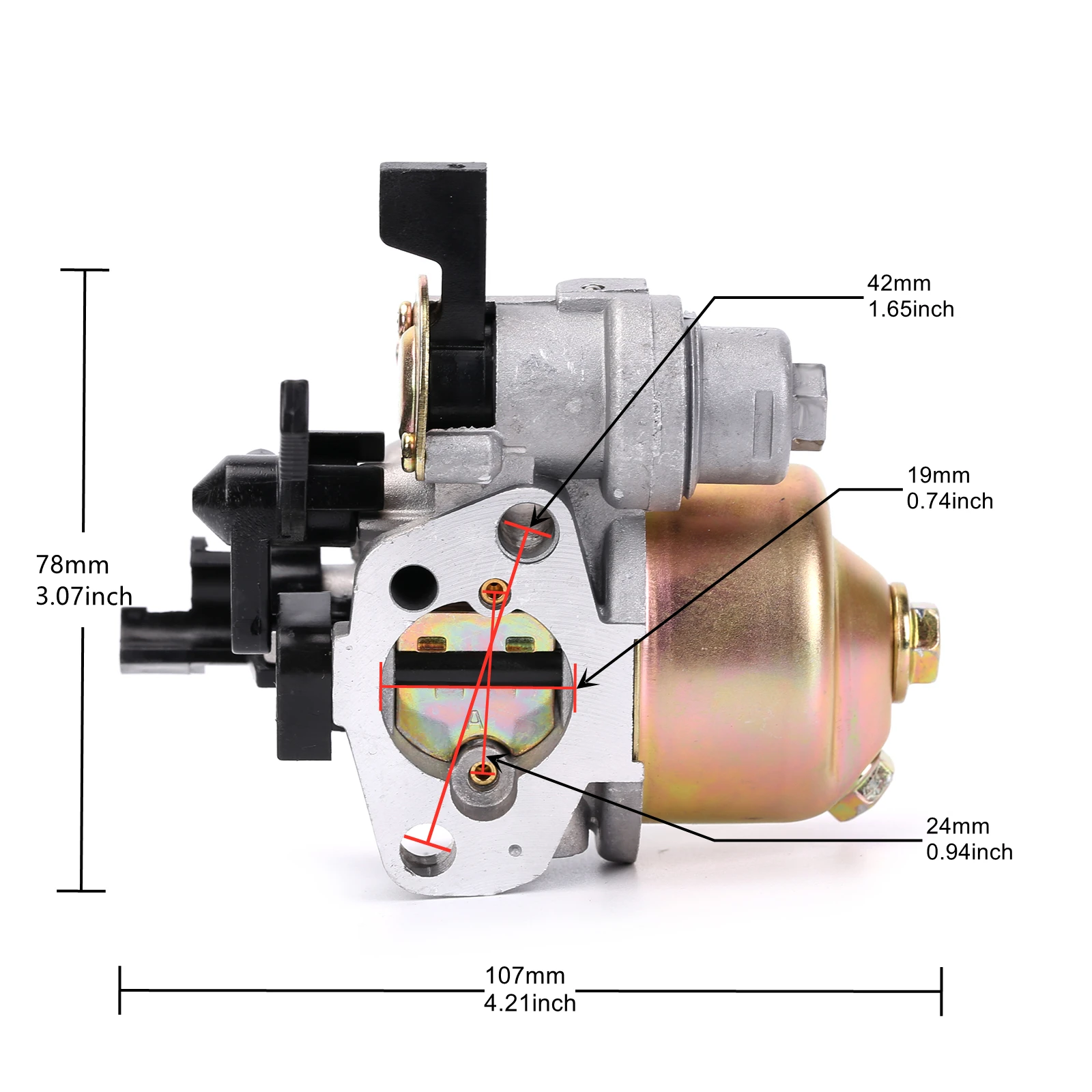 3. Преимущества: OEM запасные части, не оригинальные, отверстие для установки в центр: 42 мм, основное отверстие: 19 мм, отверстие для дросселя: 24 мм.