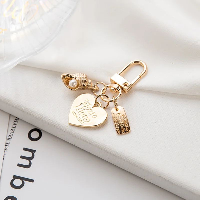 Милый брелок в виде сердца для женщин и девочек, корейская мода, жемчужная цепочка для ключей, Сумка с орнаментом, очаровательный золотой цвет, брелок с кольцом для ключей, аксессуар для ключей