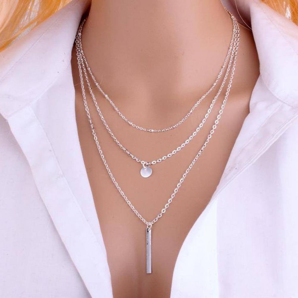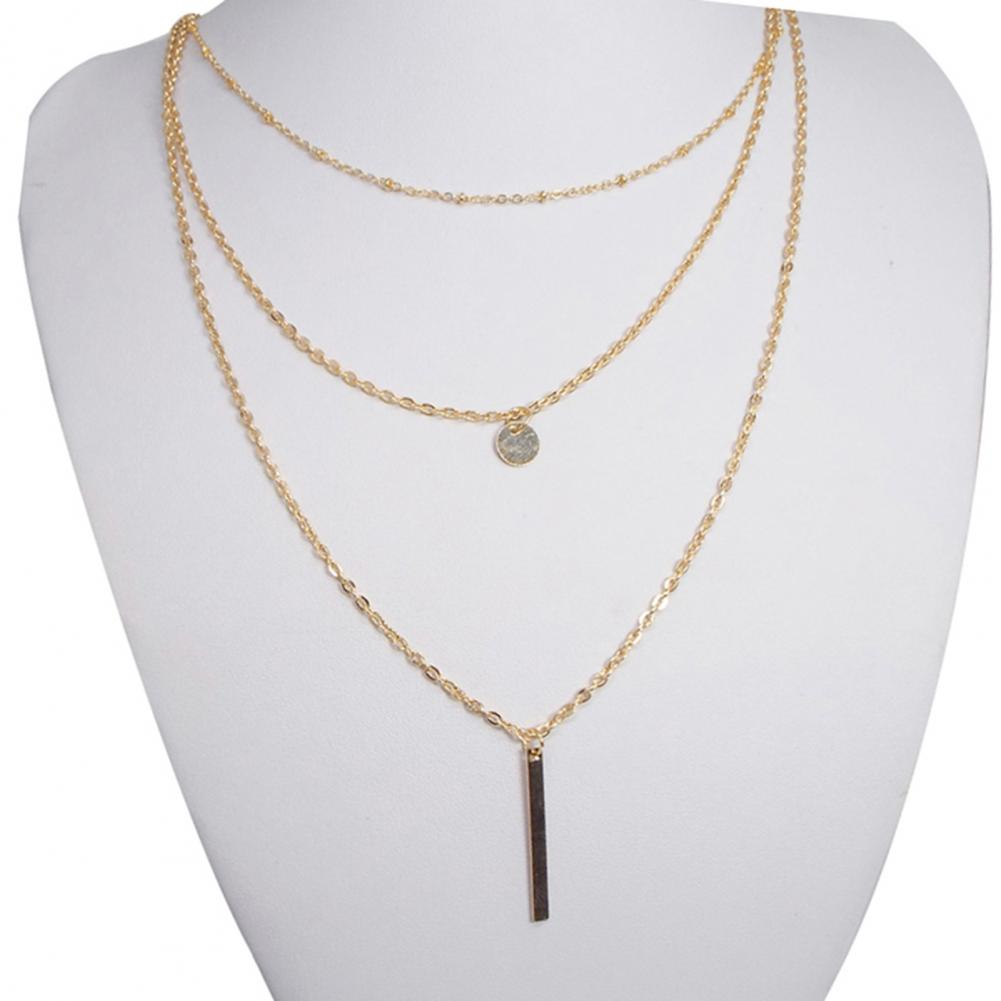 Трехслойное ожерелье с блестками и подвеской в полоску, легко отображает вашу очаровательную кривую шеи.