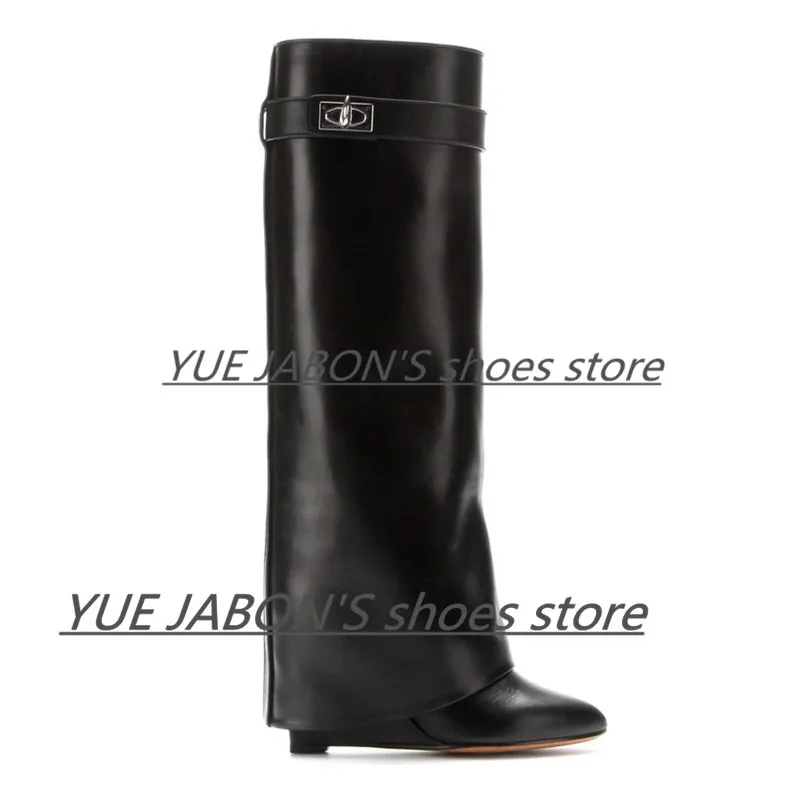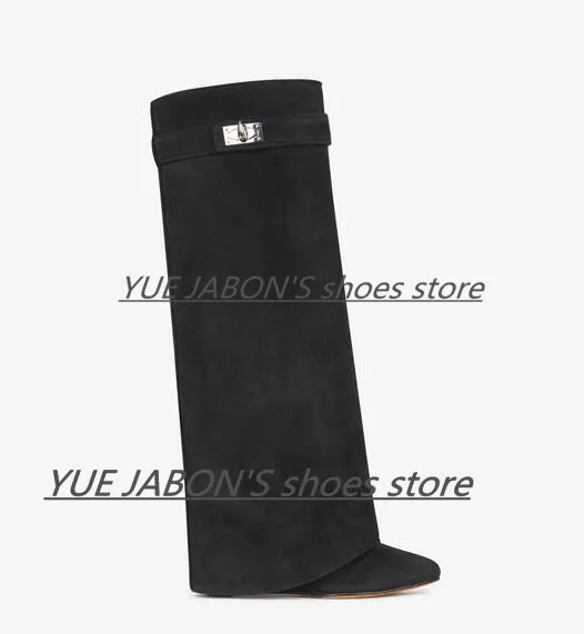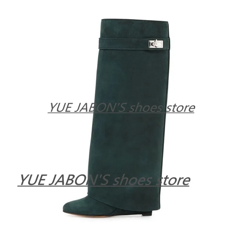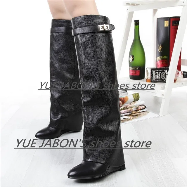 Женские сапоги на танкетке из натуральной кожи с акулой; Замшевые сапоги до колена на высоком каблуке; Высокие сапоги с острым носком; Женские сапоги на танкетке; Botas Mujer