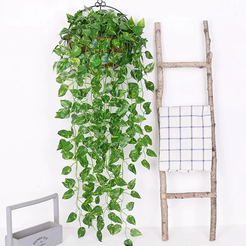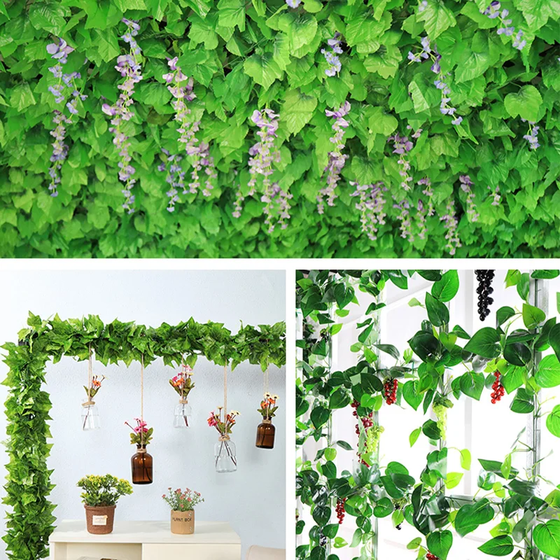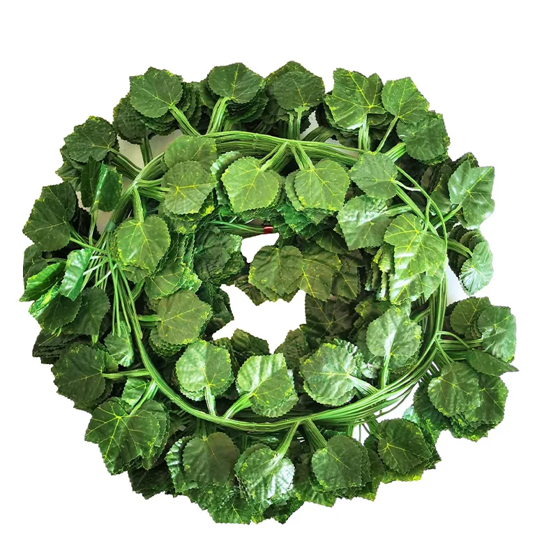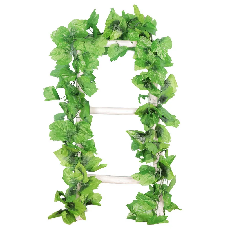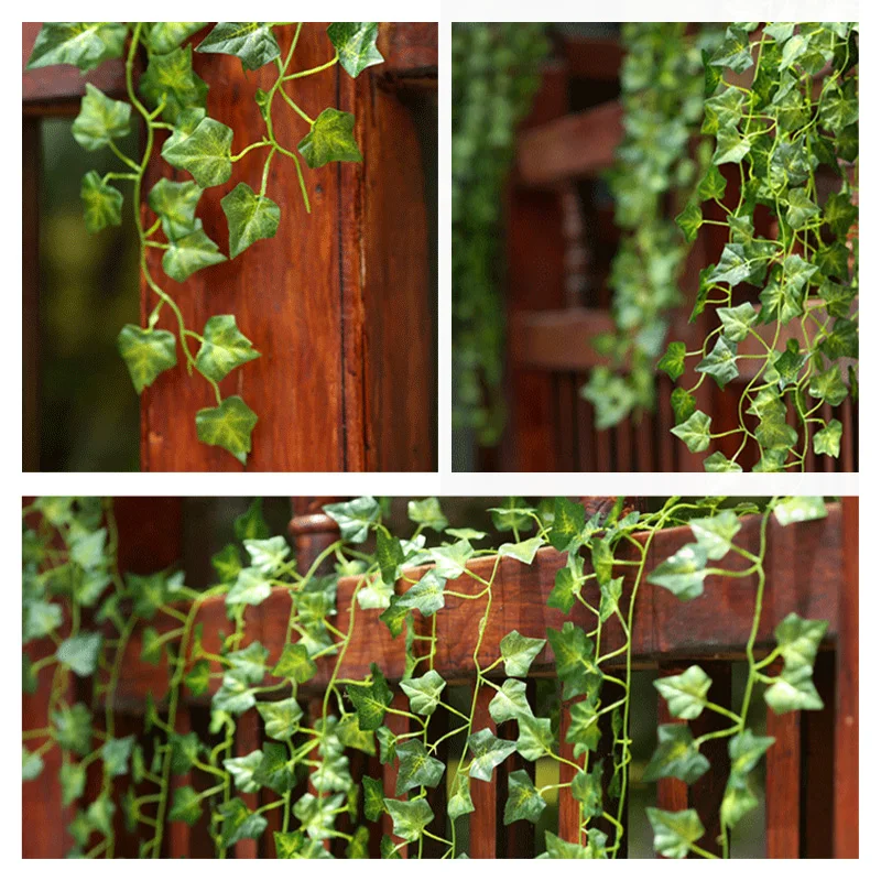 Материал зеленых лоз: Листья искусственного плюща изготовлены из шелка и стебли изготовлены из пластика. В наличии 12 нитей таких искусственных плющовых лоз.