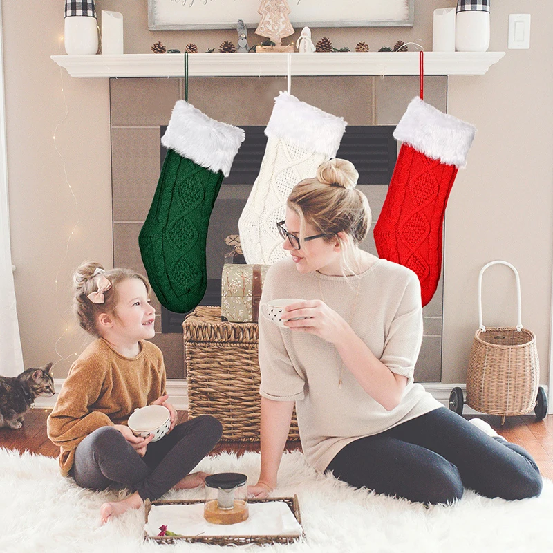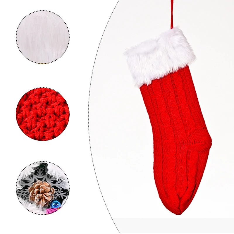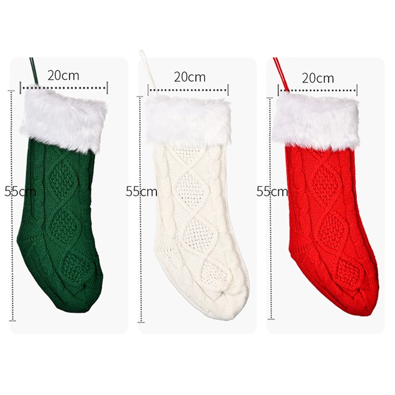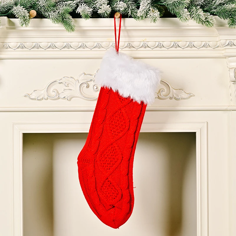 Вязаные рождественские чулки, рождественские украшения, вязаные чулки, рождественские носки декоративные подарки, праздничный чулок для детей