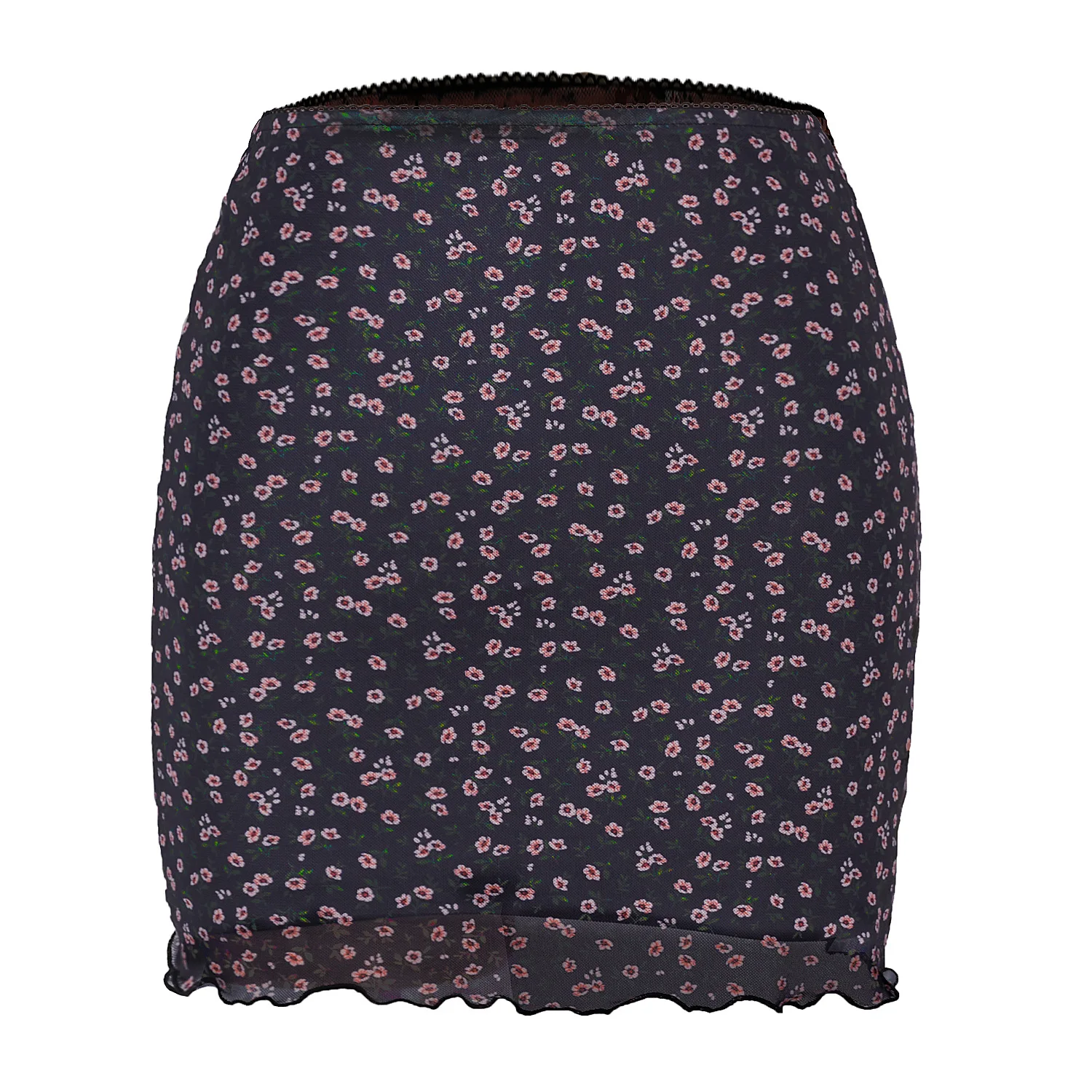 Women Ladies Mini Skirts VD2243 Black Floral Printed Gothic Clothes Brown Skirt Womens 2021