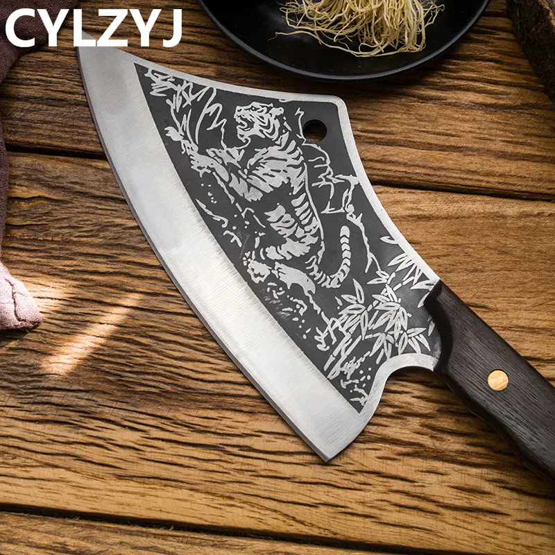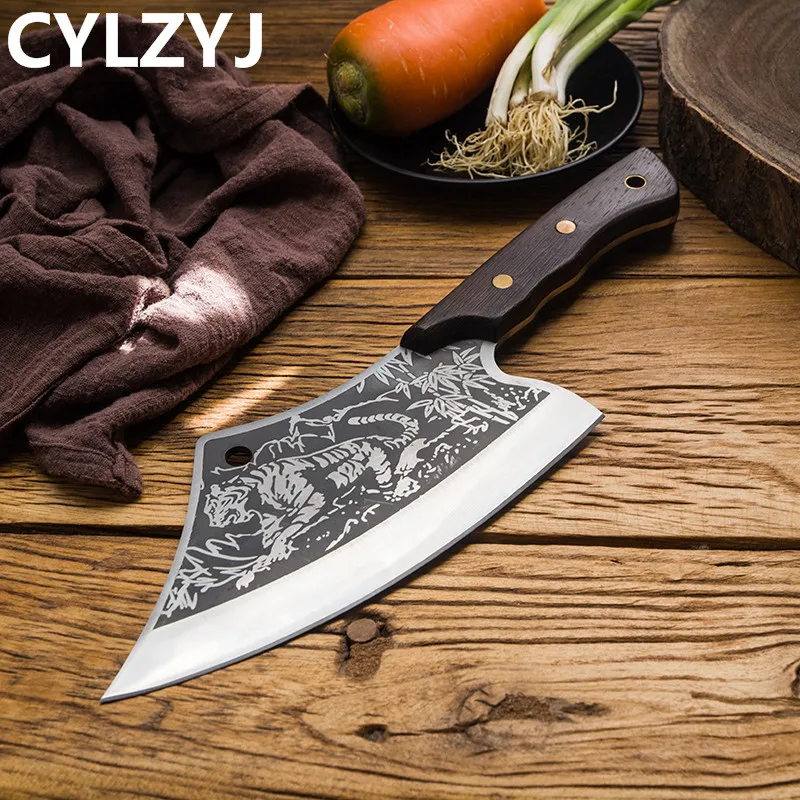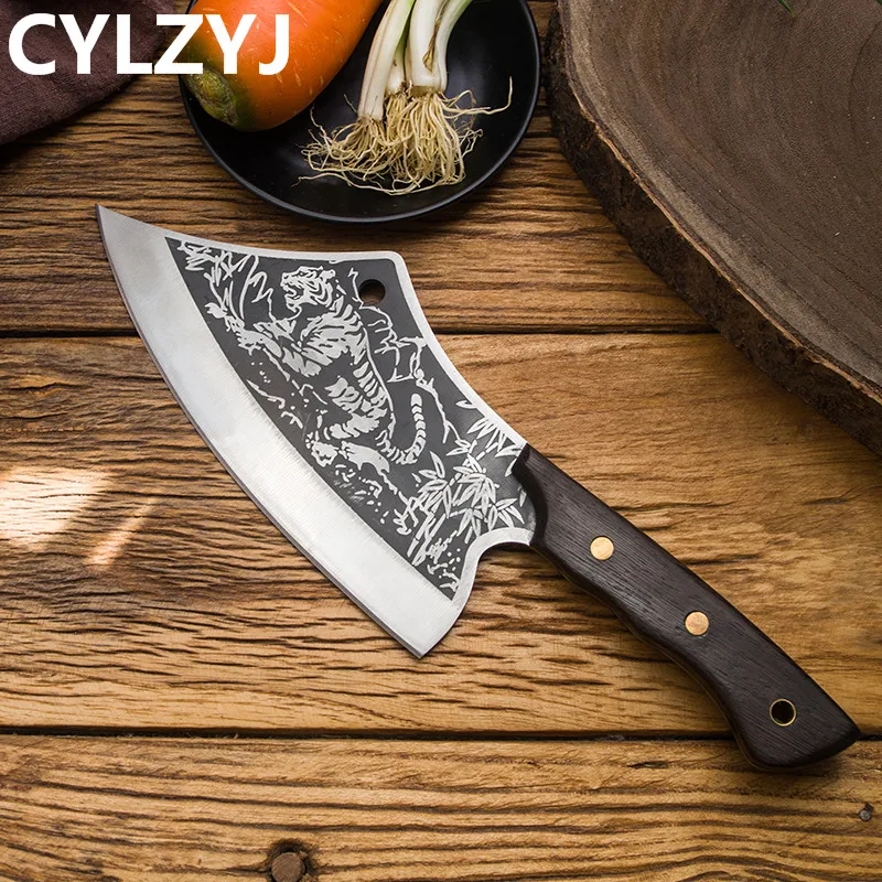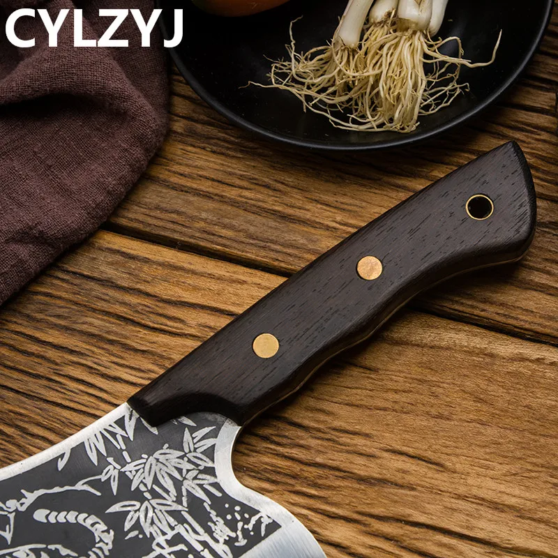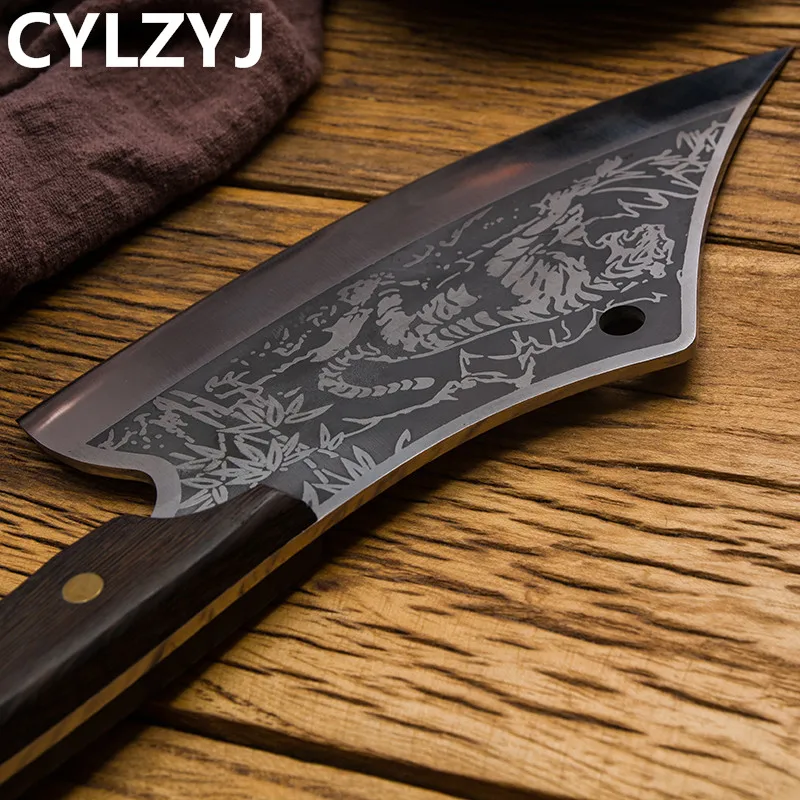 Материал лезвия: нержавеющая сталь 5Cr15mov Материал ручки: куриное крыло дерево + Медный гвоздь натуральное куриное крыло дерево натуральное куриное крыло деревянная ручка славится своей уникальной текстурой и излечивается высокотемпературным уплотнительным воском для улучшения цвета и долговечности. Волнистая конструкция ручки в соответствии с искусственным дизайном, волнистая ручка используется для увеличения противоскольжения и комфорта. Медные заклепки Luban Craft. Прочный, прочный и антикоррозийный. Процесс чернения слой процесс чернения обработка делает поверхность лезвия форма оксидного слоя для достижения эффекта анти-ржавчины. Шаблон кованого молотка после высокотемпературной ковки, плотность и чистота стали улучшены, так что твердость и прочность стали значительно улучшаются. Ручное измельчение воды лезвие сглаживается вручную, лезвие гладкое, резкое, резкое и легко измельчается.