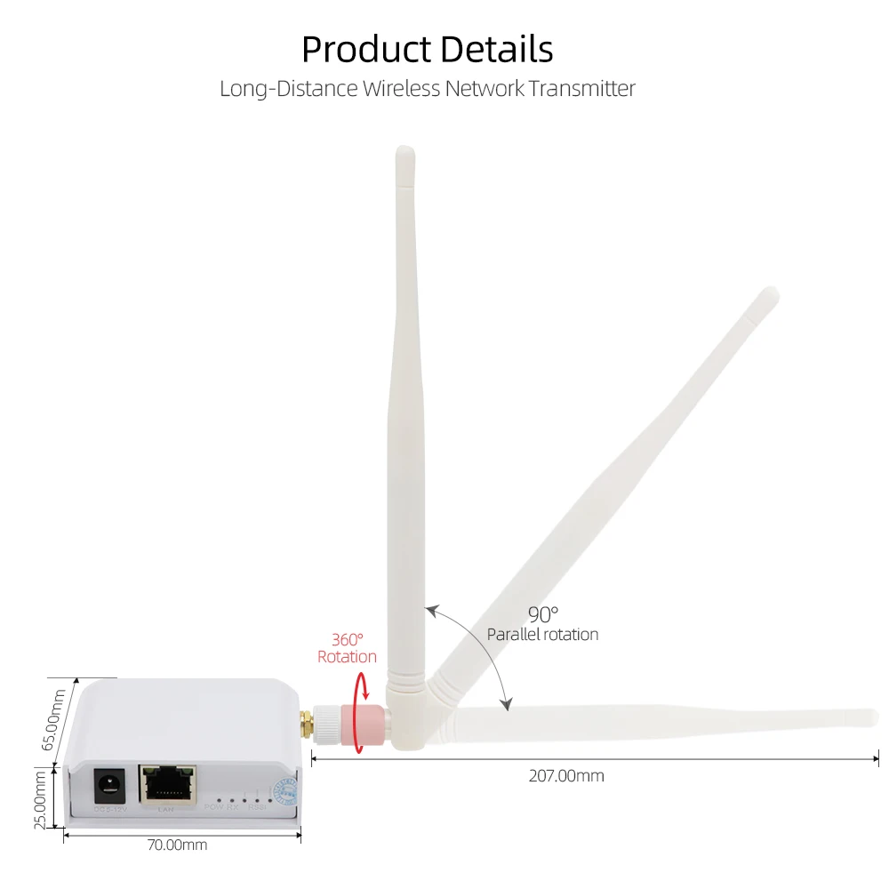 Все больше и больше Интернет-устройств требуют беспроводных подключений. Традиционная сеть 2,4G имеет короткое расстояние передачи и слабую способность проникновения стены. Наш беспроводной трансивер может использоваться не только в сочетании с нашей системой видеодомофона, но также может использоваться для беспроводной передачи данных на большие расстояния между другими устройствами.