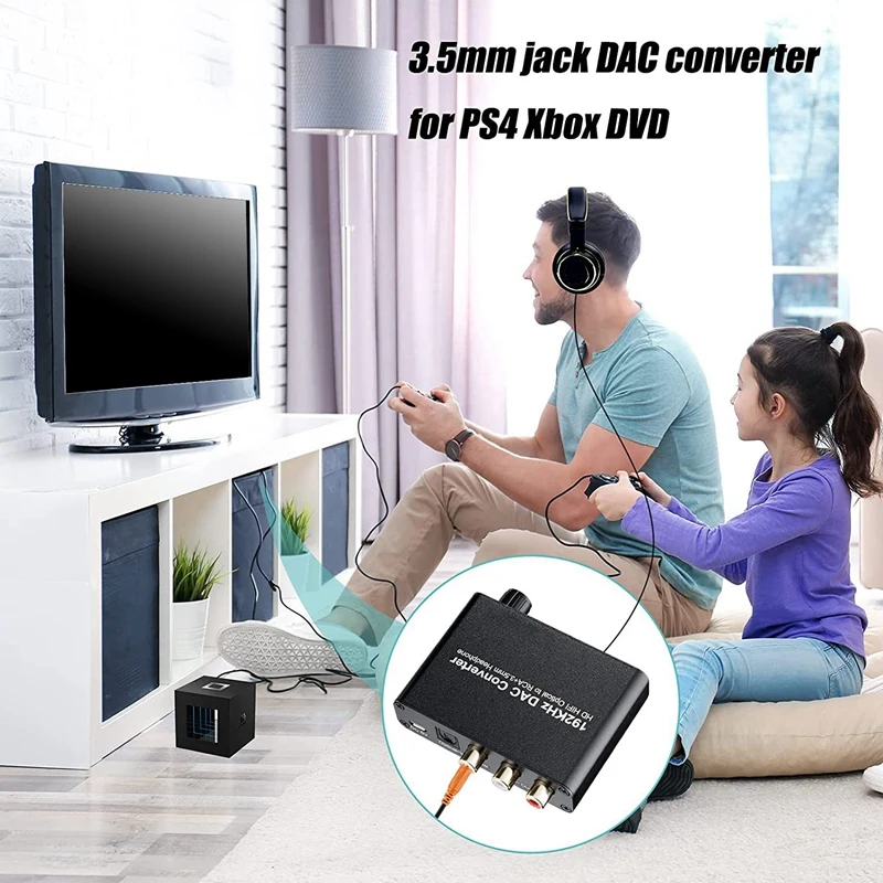 [Преобразование нескольких интерфейсов] преобразование оптического входа (Toslink / SPDIF) с кабелем OD или коаксиальными цифровыми аудиосигналами для выхода 2 RCA дюймовых, L + R, аналоговых стереосигналов, 3,5 мм aux для наушников;