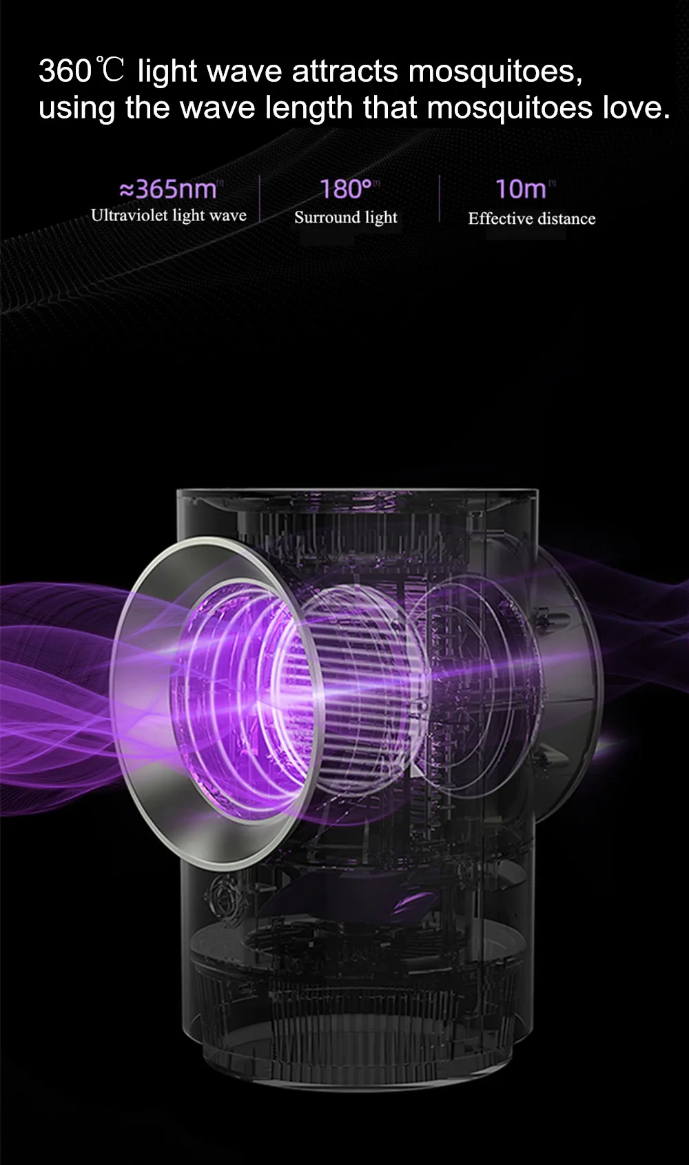 4. Светильник на 360 градусов поглощает комаров по длине волны, которую любят комары.