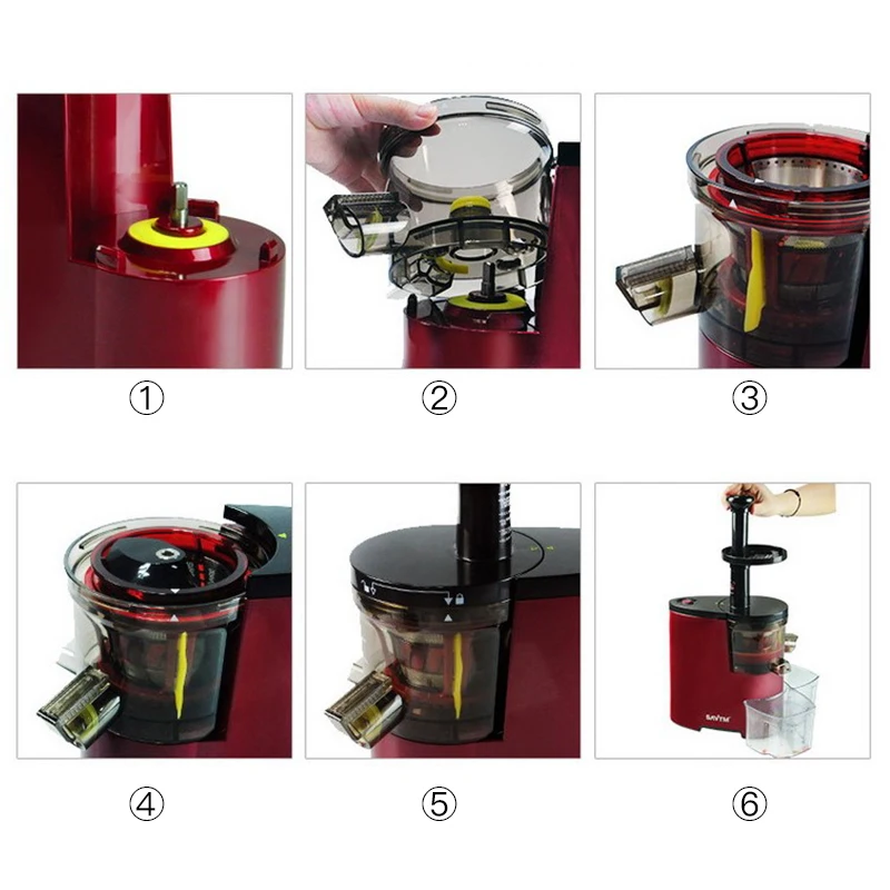 -Положите толкатель: Положите чашку сока на сок и шлак на выходе, а затем положите толкатель