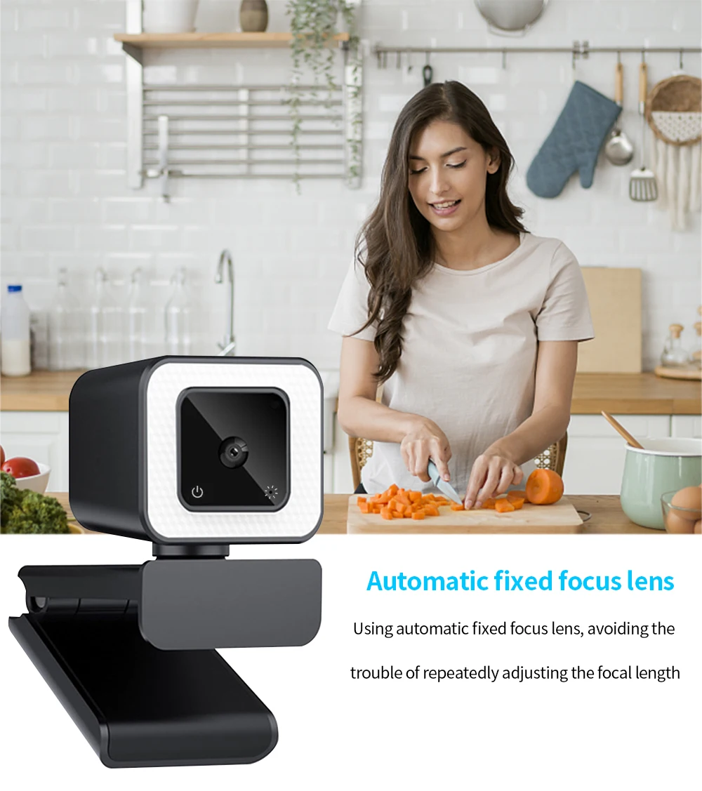 3.Основной функциональный дисплей, 1080P HD автофокус, угол обзора 90 °, 3 уровня касания, регулируемый светодиодный светильник, двойной микрофон с шумоподавлением, вращение по горизонтали 360 °, без привода Plug and play