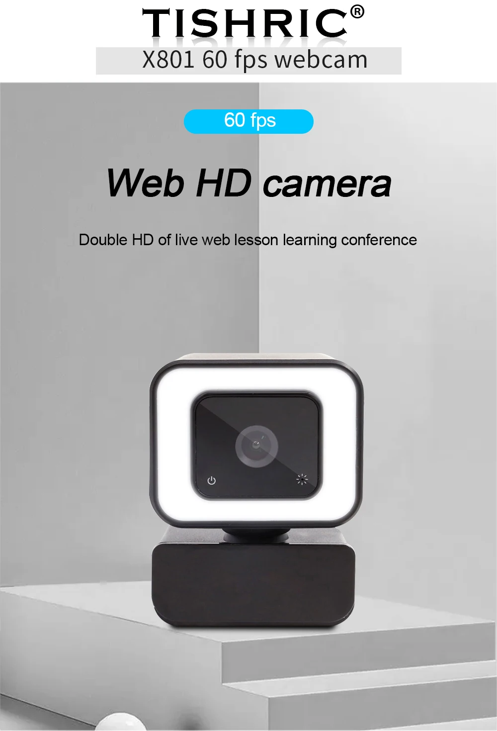 2. Параметры продукта. Название бренда: TISHRIC. Название продукта: X801 60 кадров веб-камера. Размер пикселя: 1920*1080. Вес изделия: 86 г. Размер изделия: 50 мм * 56 мм * 98 мм, F/NO.: 2,5 мм, EFL: 3,0 мм, FOV:90 °, IR :650 ± 10 нм, конструкция линз: 2P + 2G + IR, частота кадров: 60 кадров в секунду, Рабочая температура:-10 ° - 50 °, интерфейс: Type-C, передача Interace