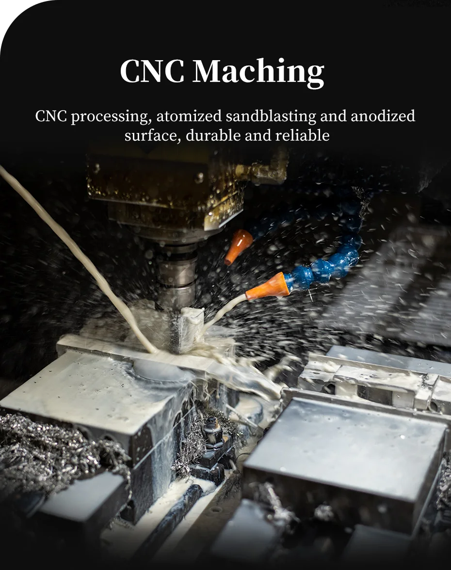 6. Using high-precision CNC processing, the surface is atomized and sandblasted and anodized, durable and reliable.