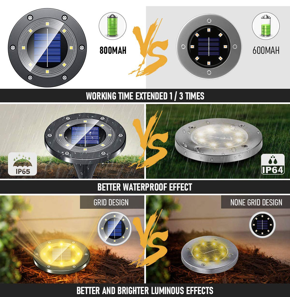 2. Лучше, чем многие IP64 водонепроницаемые эффекты на рынке. IP65 высокоуровневые водонепроницаемые солнечные наземные огни могут работать в любую погоду. Не беспокойтесь о сильном дожде, снегу, морозе или санях.