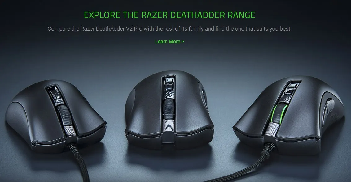 Сравните DeathAdder V2 Pro с остальной семьей и найдите тот, который подходит вам лучше всего.