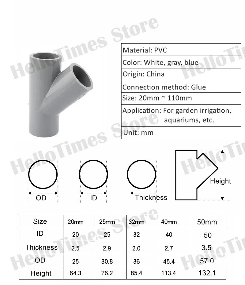 Название: 20 ~ 50 мм y-коннектор из ПВХ