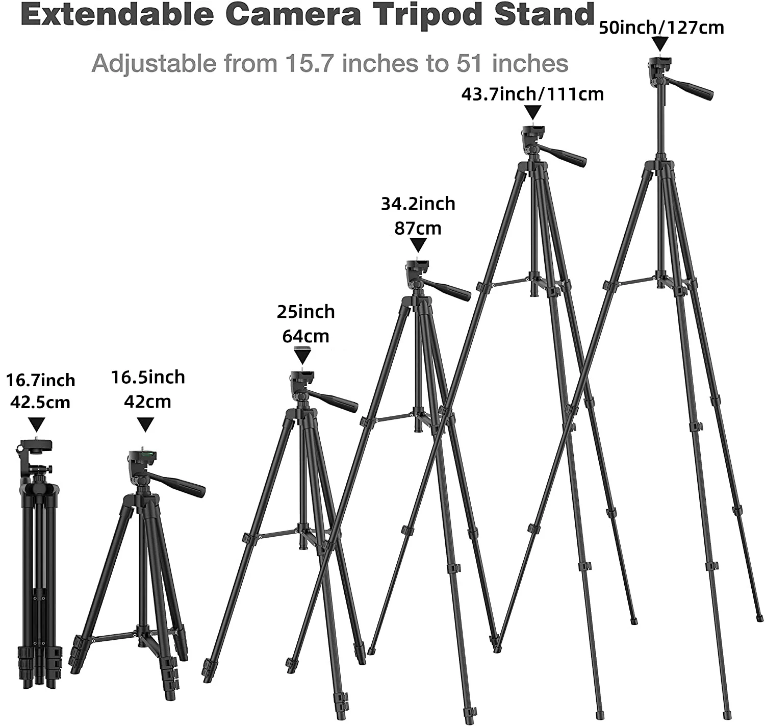【Регулируемый и расширяемый 】: Этот штатив имеет 3 регулируемые быстросъемные фиксаторы, которые могут растягиваться от 16 дюймов до 55 дюймов в высоту. Очень удобно в использовании.