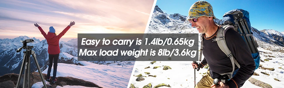 【 Лучший Подшипник нагрузки и компактный дизайн 】: Этот штатив для камеры использует полностью алюминиевую трубу и высококачественные пластиковые коврики. Сделайте этот штатив достаточно крепким! Этот штатив выдерживает давление до 8 фунтов. Кроме того, вес 730 г/1,6 фунтов и минимальный размер 17,3 дюйма делает его портативным и практичный элемент оборудования.