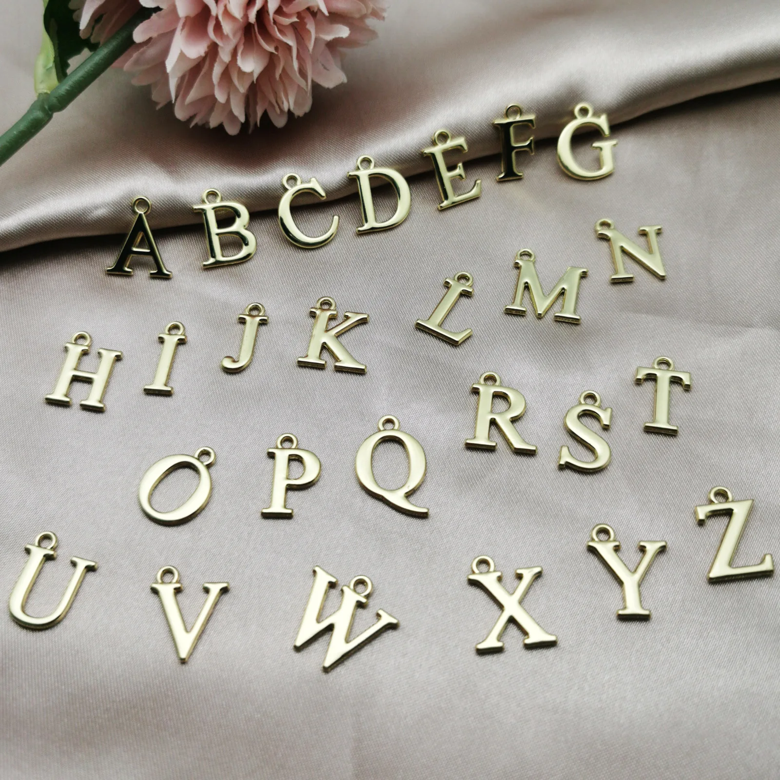 10pcs Classics 26 English Letters Pendants Alphabets Charms Fit Fashion Earring DIY Jewelry Making Accessory Golden Metal