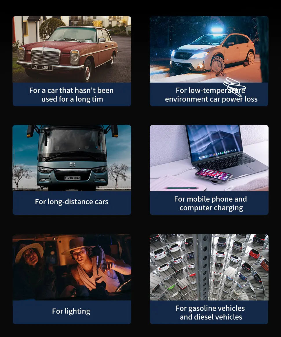 Подходит для 85% транспортных средствПоддержка 12V/7.0L бензиновый двигатель & 12V/5.5L дизельным двигателем запуска