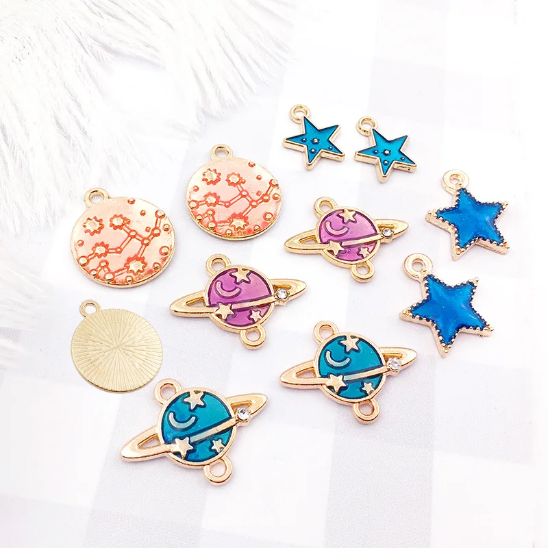Микс 20 шт./упак. классический Космос Вселенная земля Луна Звезда Эмаль талисманы золото Цвет Подвески "сделай сам" для изготовления украшений вручную ремесло