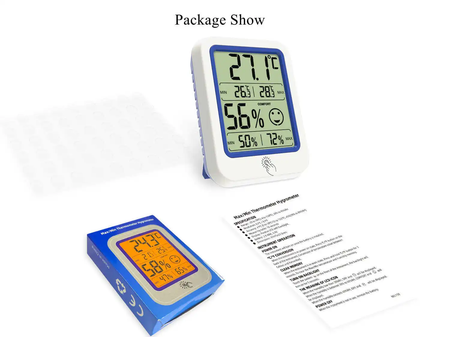 This humidity thermometer integrates LCD display with large clear digits indicator, displays indoor temperature and humidity simultaneously, very easy to read.