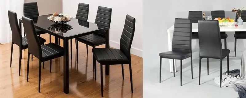 6Pcs/Set High Back PU Leather Dining Chairs Set Waterproof Padded Seat Metal Legs Dining Chair for Home Kitchen Restaurant